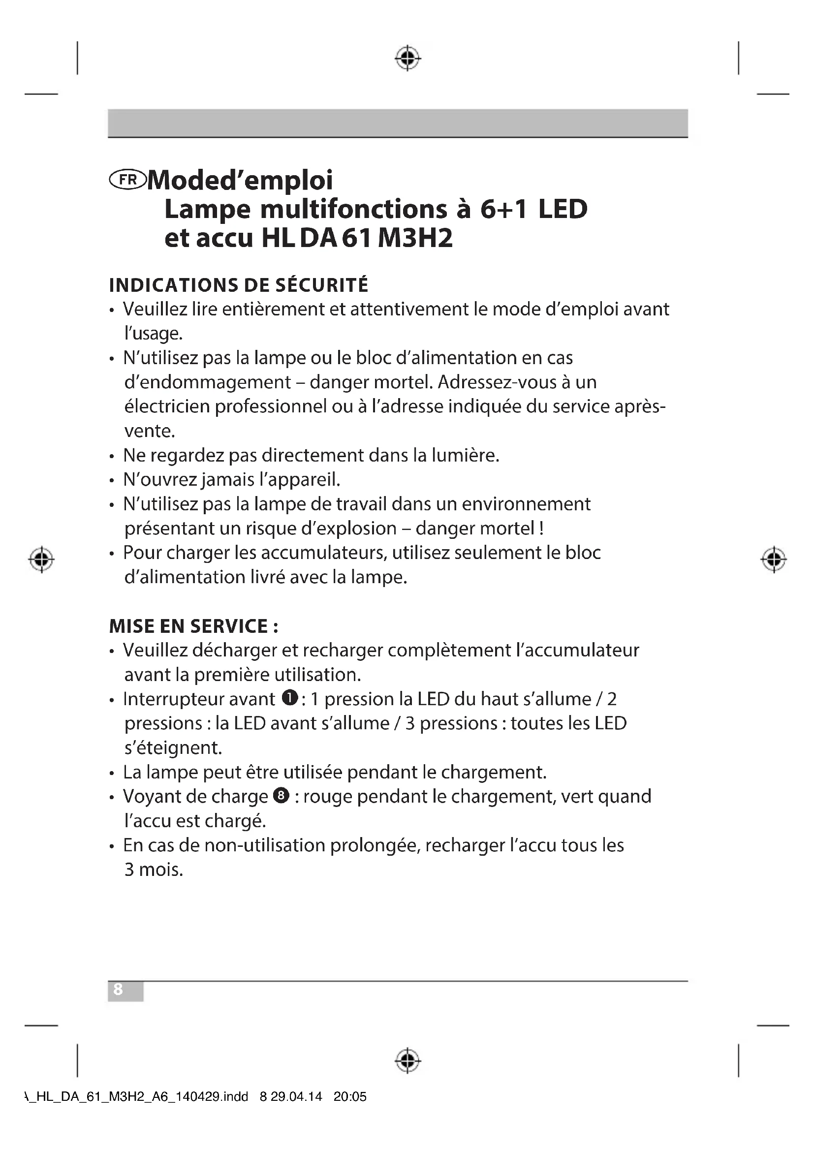Mode d’emploi Lampe multifonctions à 6+1 LED etaccu HL DA 61 M3H2