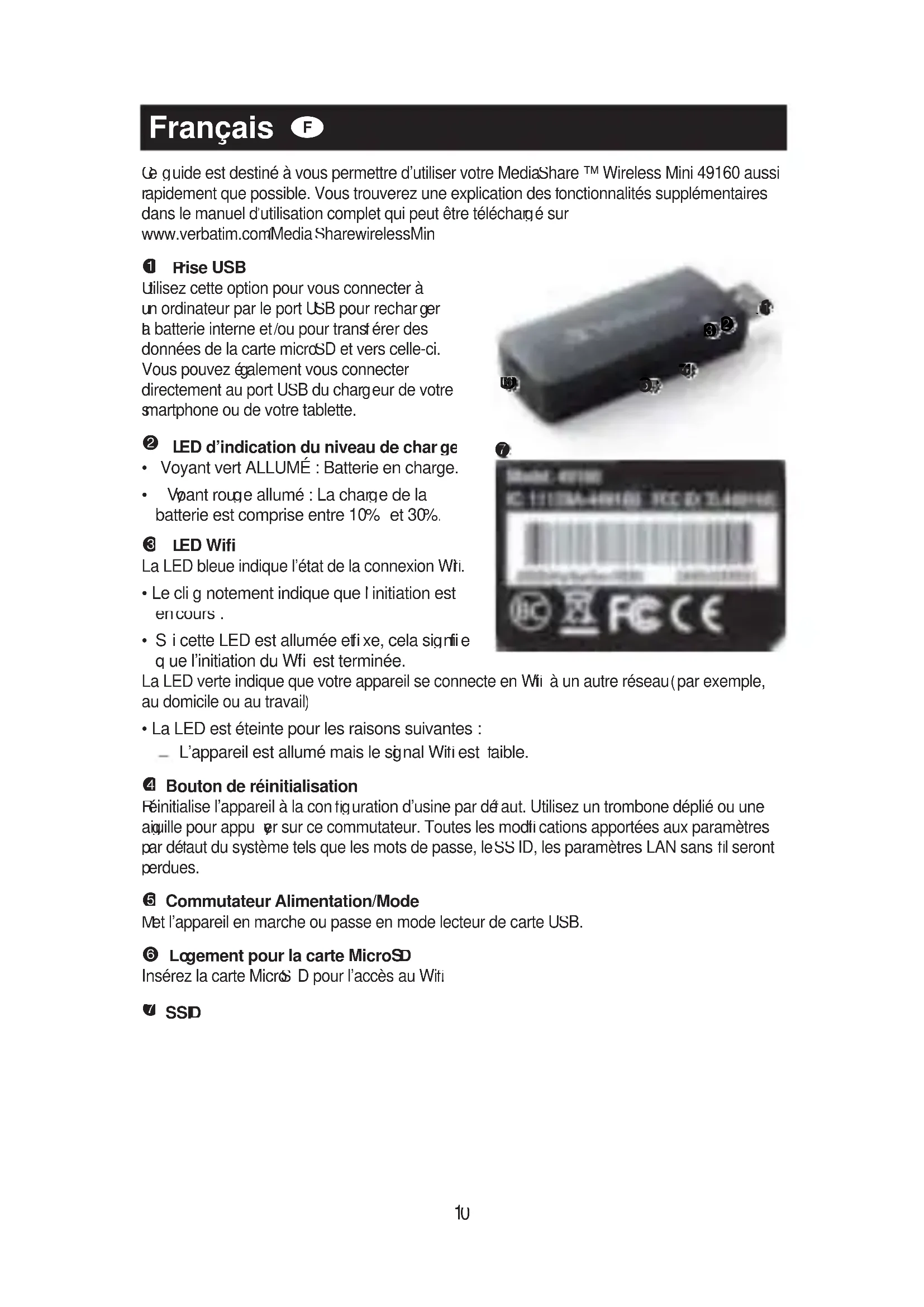 MODE D'EMPLOI MediaShare Wireless Mini VERBATIM