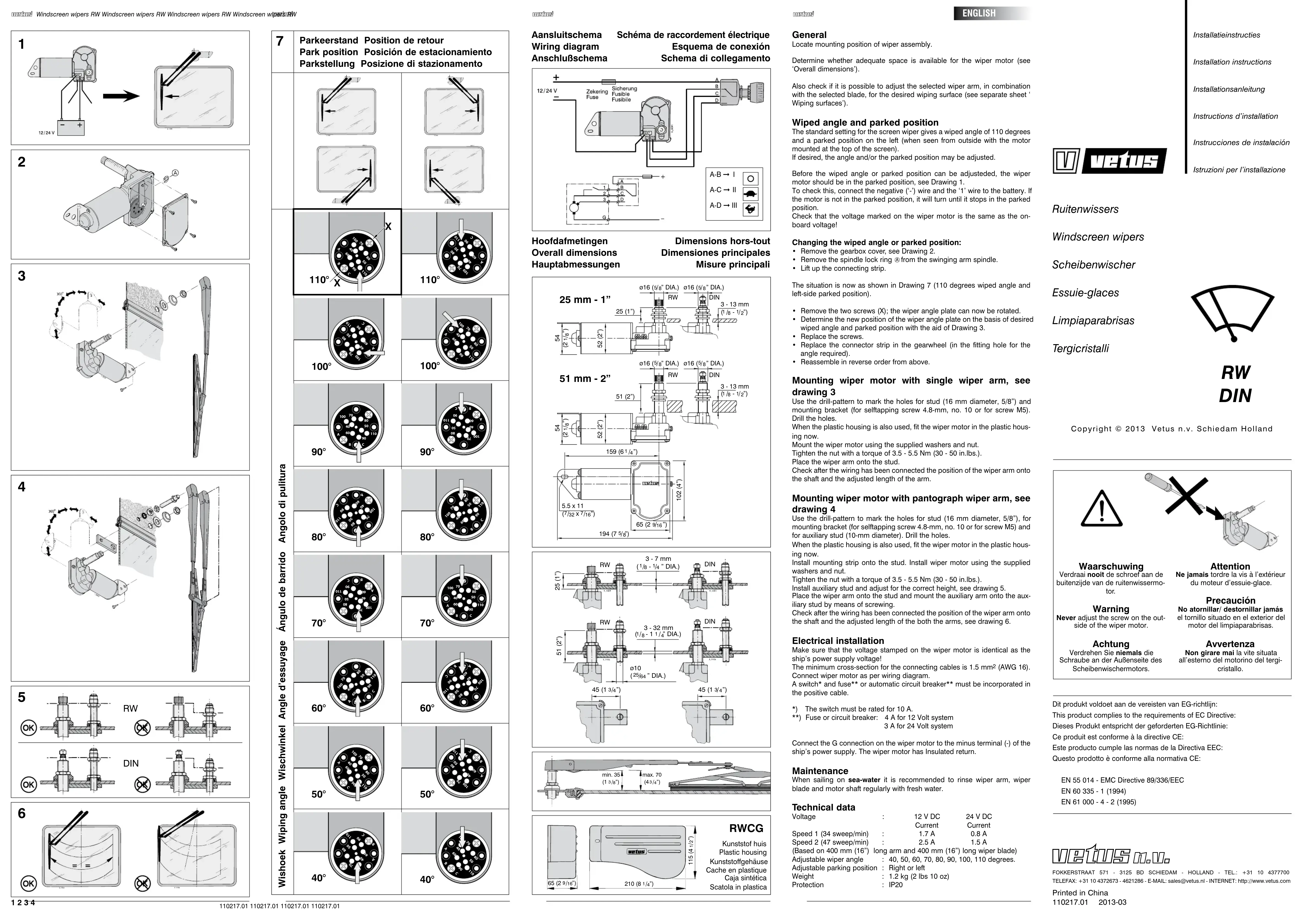 RW01A - Essuie-glace Vetus - Notice d'utilisation et mode d'emploi gratuit