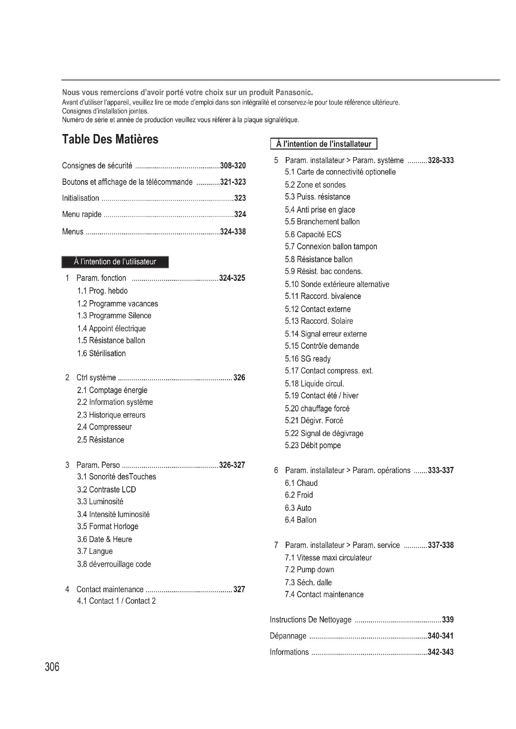 À l’intention de l’installateur 5 Param. installateur > Param. système ..........328-333