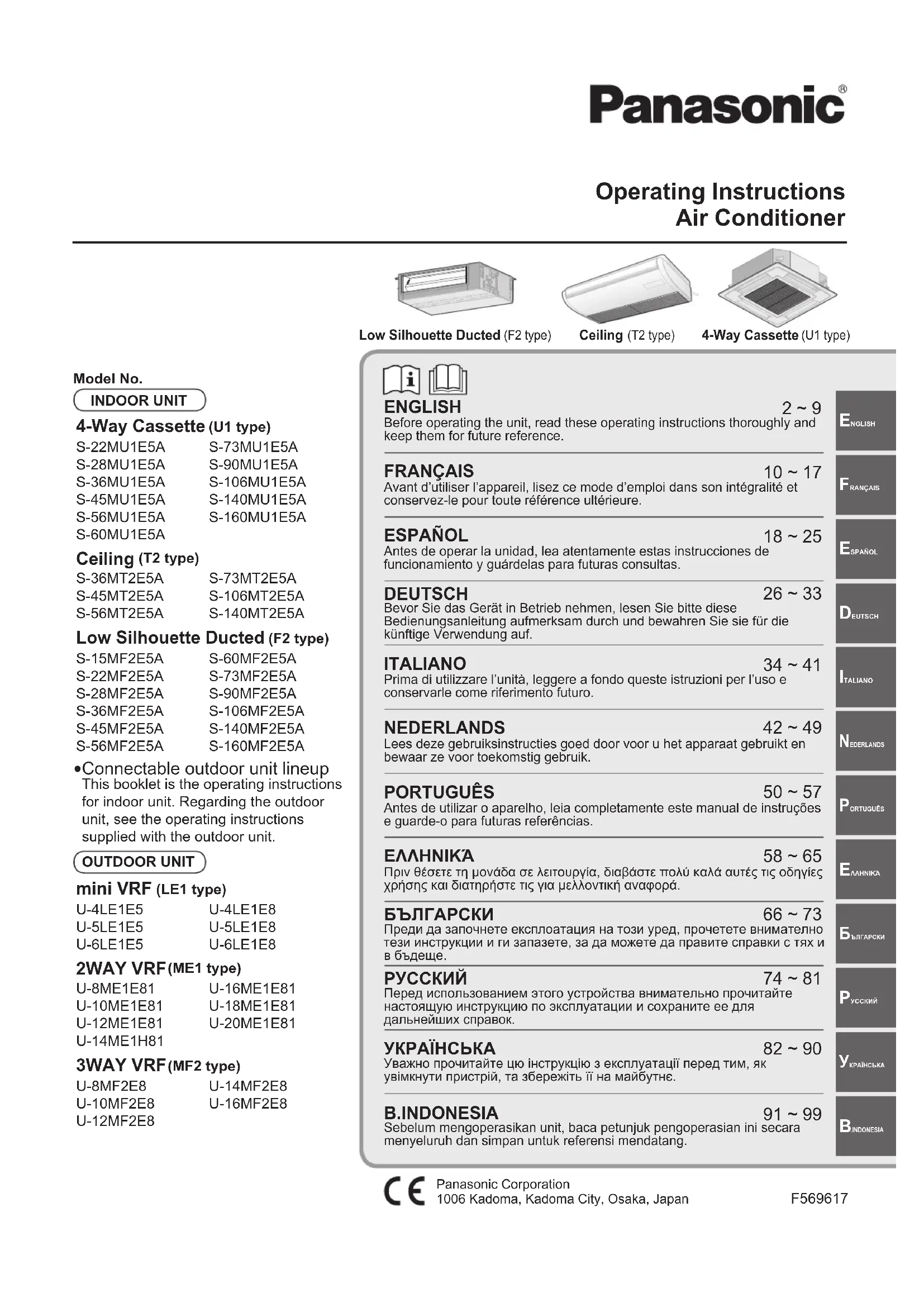 S106MF2E5A - Climatisation PANASONIC - Notice d'utilisation et mode d'emploi gratuit