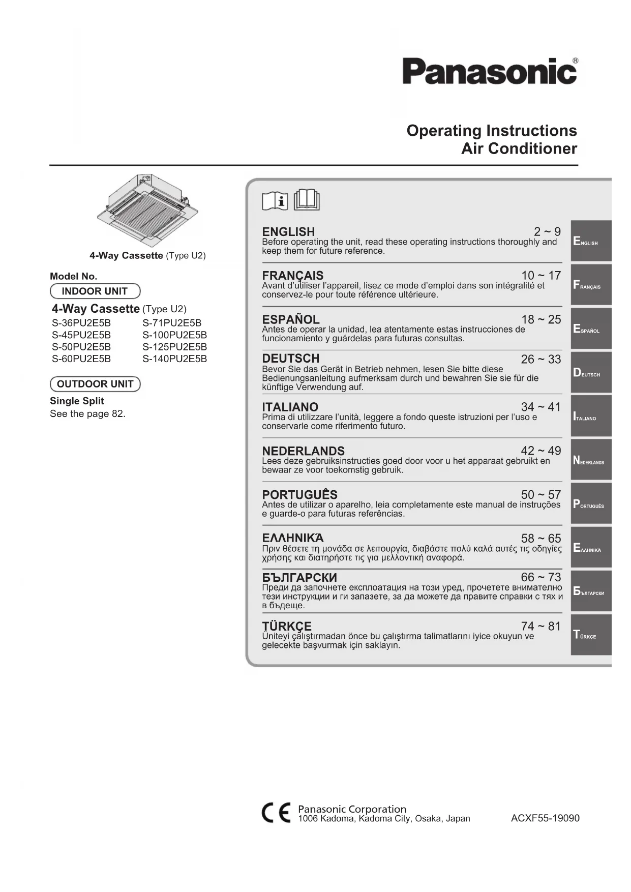 S50PU2E5B - Climatisation PANASONIC - Notice d'utilisation et mode d'emploi gratuit