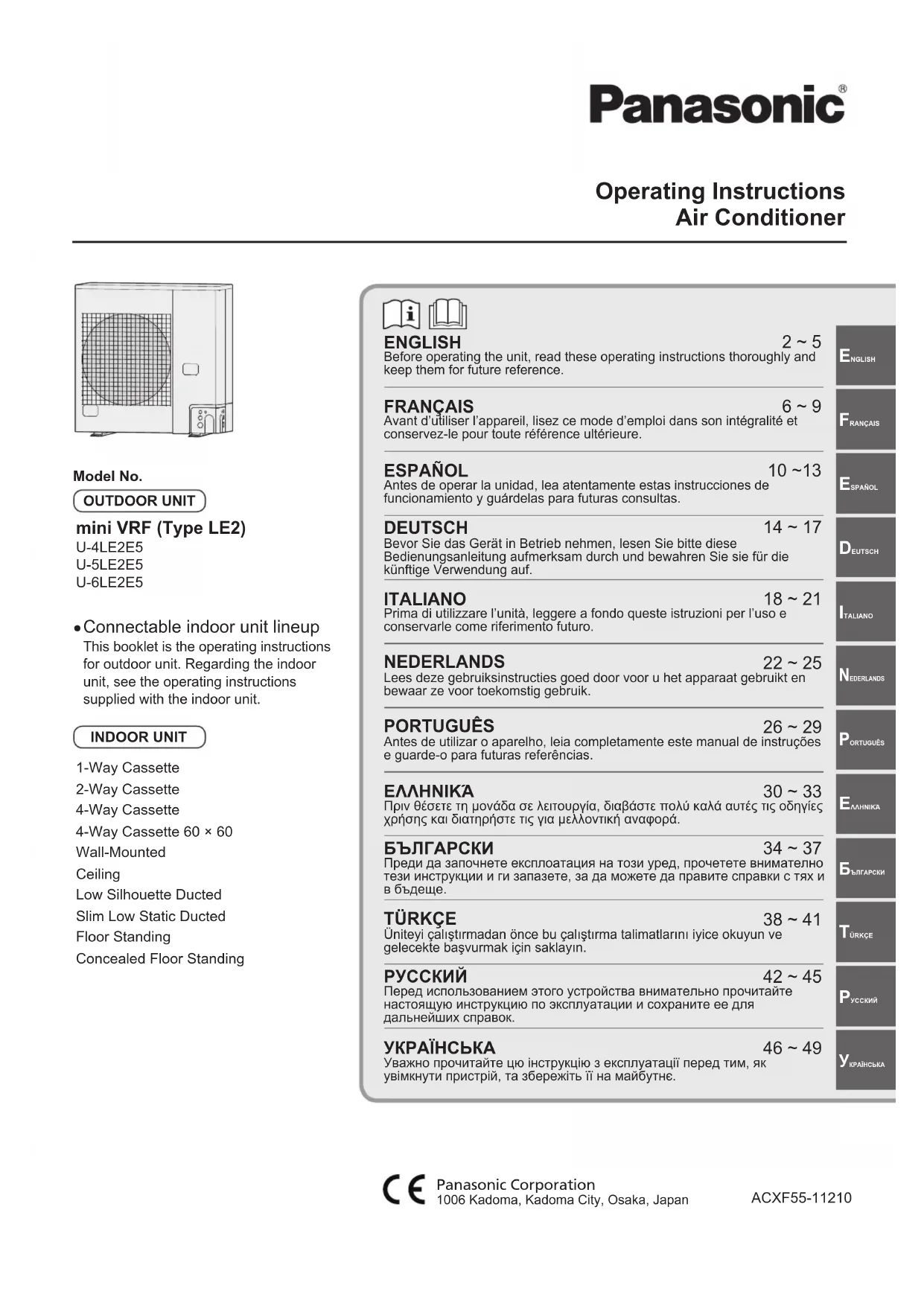 Retrouvez gratuitement la notice de l'appareil U5LE2E5 PANASONIC au format PDF.
