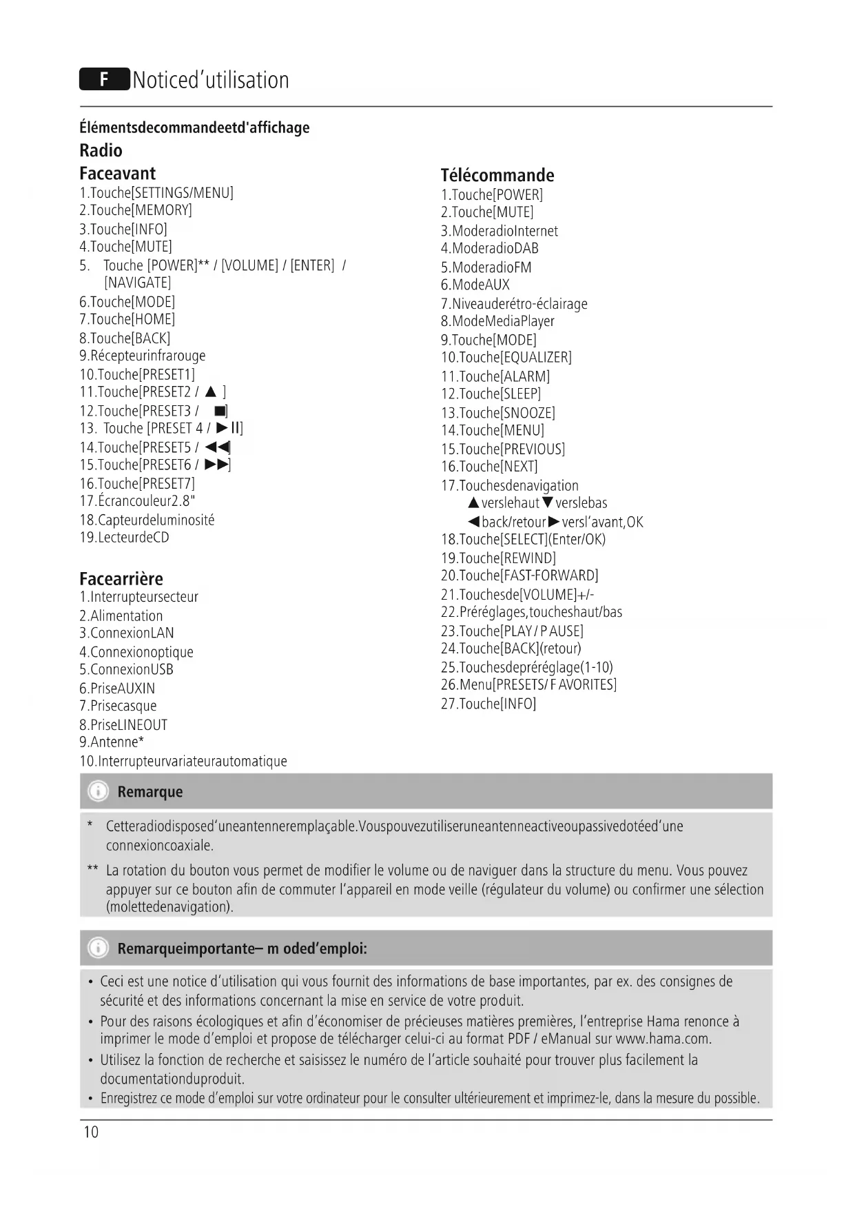 - Pour des raisons écologiques et and’économiser de précieuses matières premières, l’entreprise Hama renonce à imprimer le mode d’emploi et propose de télécharger celui-ci au format PDF /eManual sur www.hama.com.