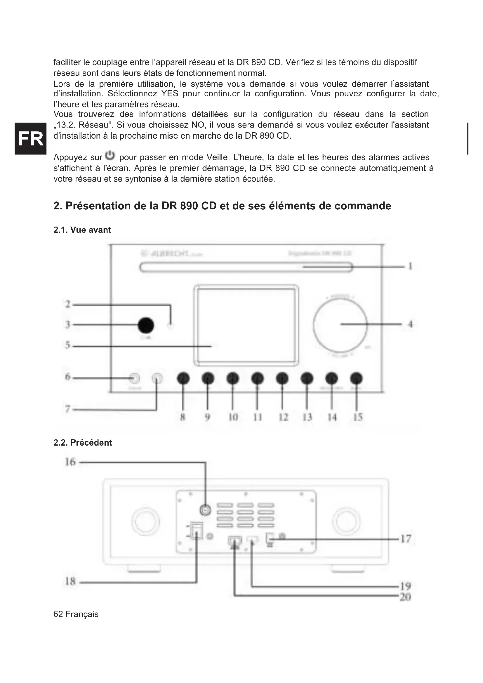 2.1. Vue avant 2.2. Précédent63Français