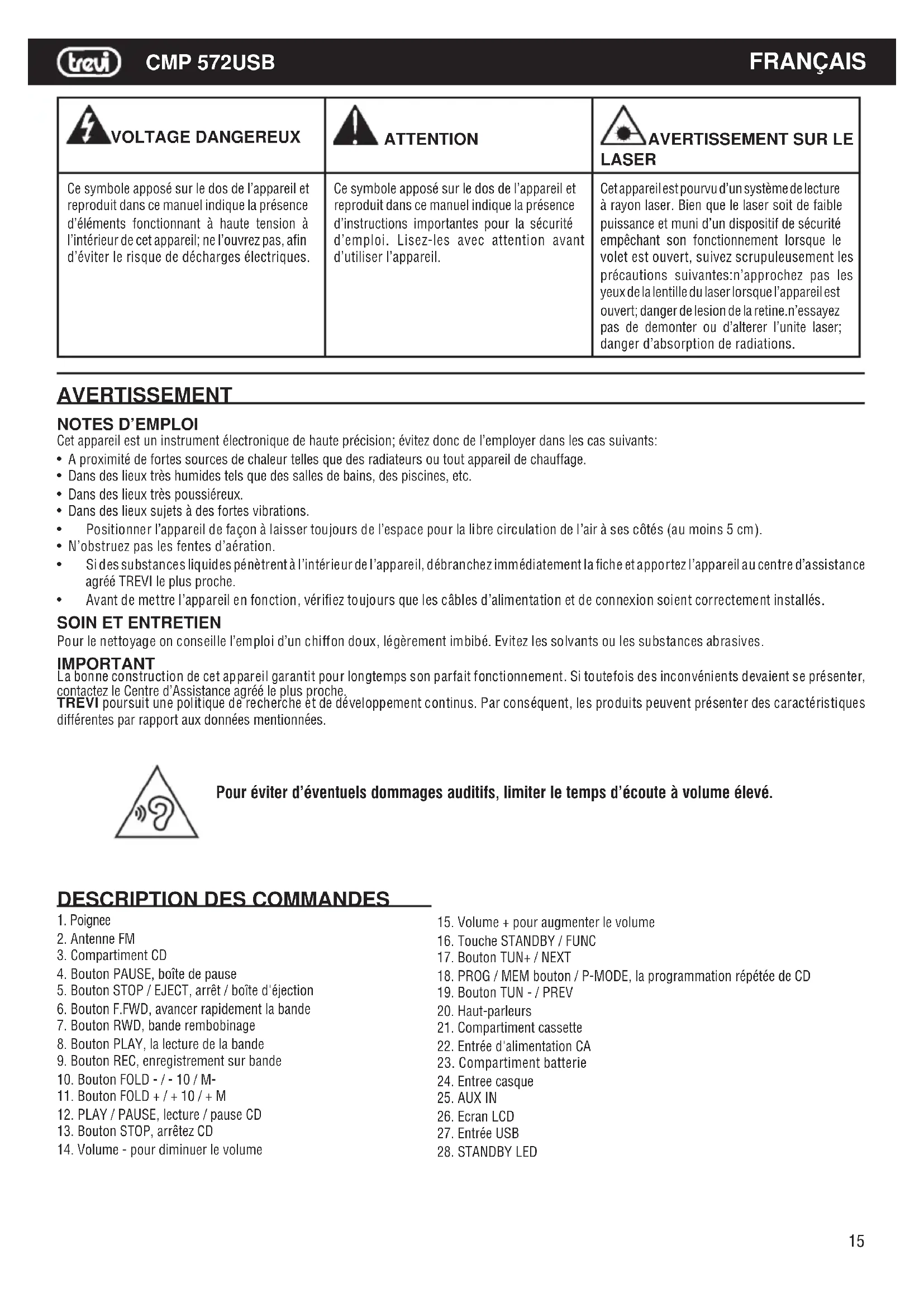 MODE D'EMPLOI CMP 572 USB Trevi