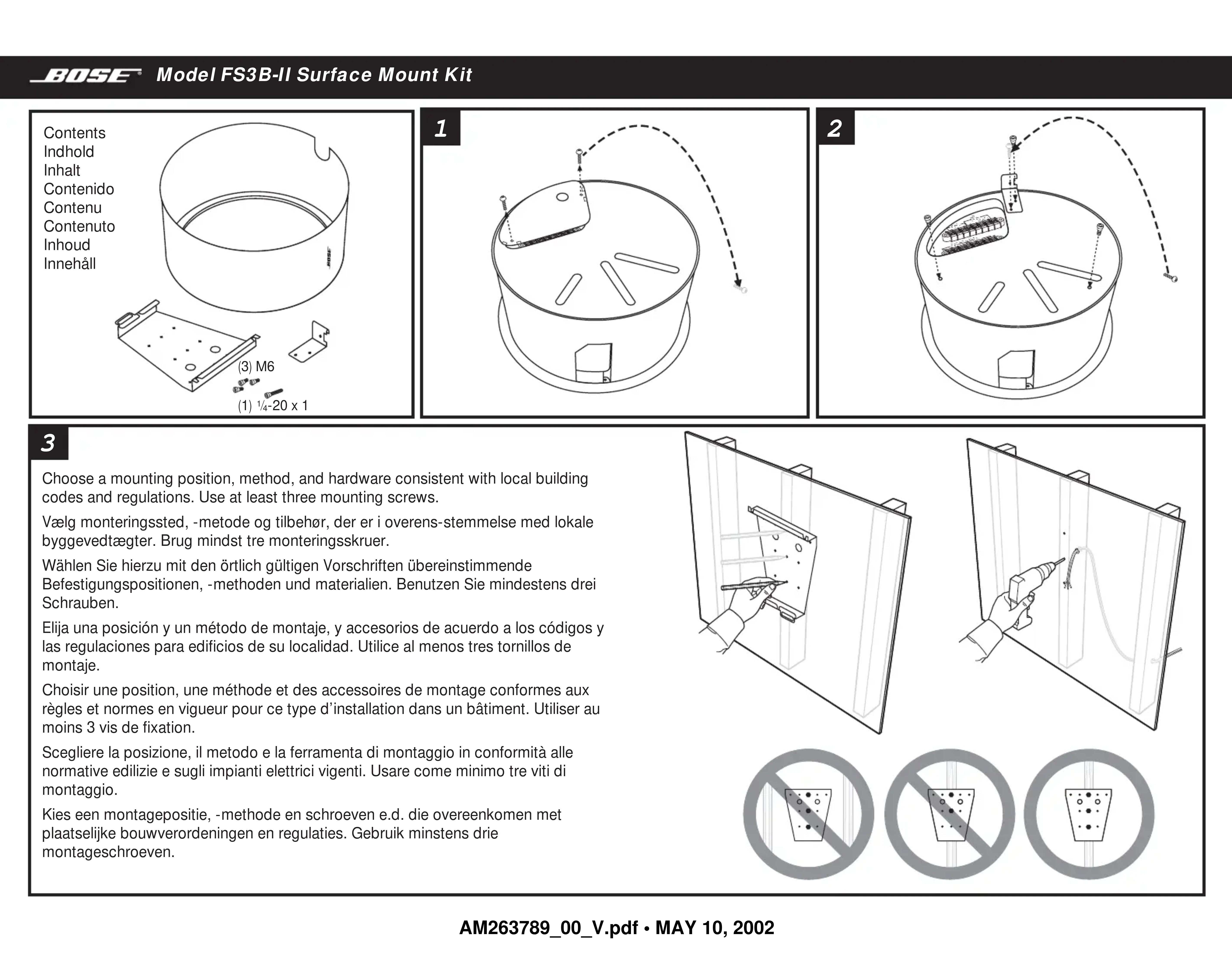 Retrouvez gratuitement la notice de l'appareil FS3BII Surface Mount Kit BOSE au format PDF.
