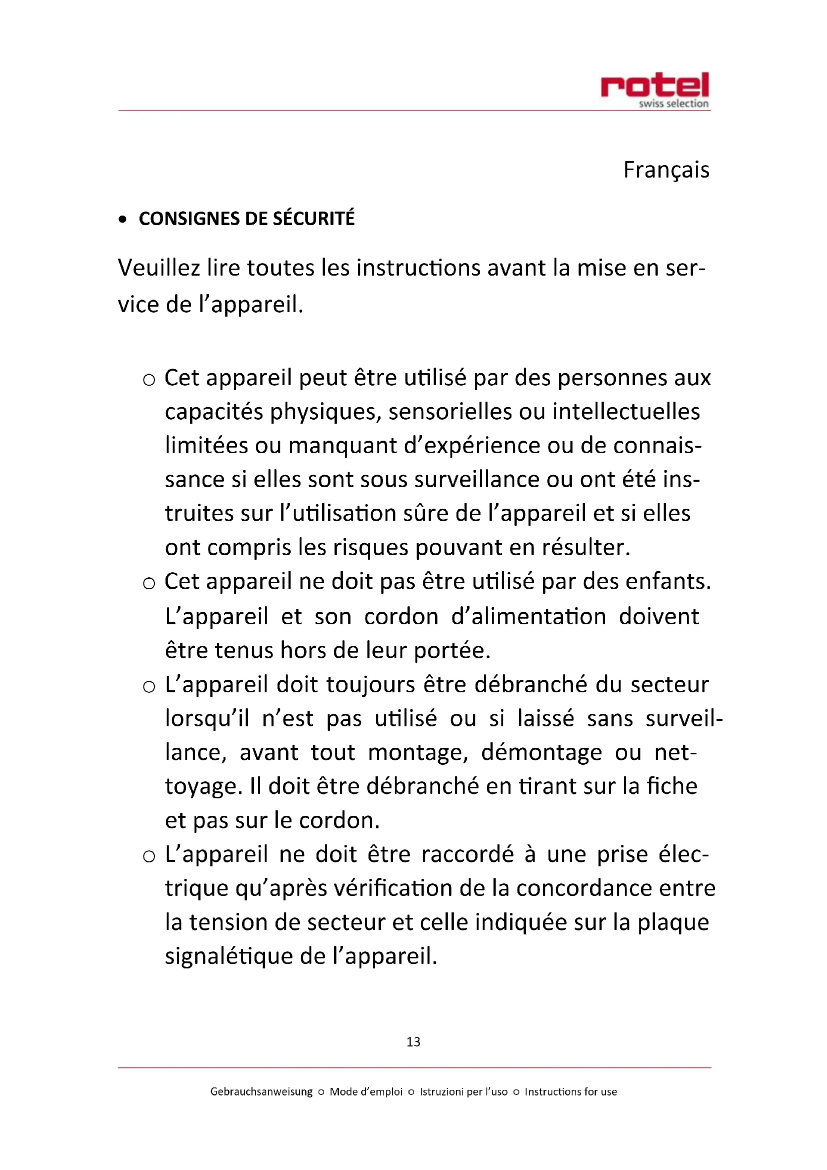 Pour une élimination dans les règles de l'art, veuillez remettre l'appareil à un reven- deur, un responsable du service après-vente ou Rotel SA.