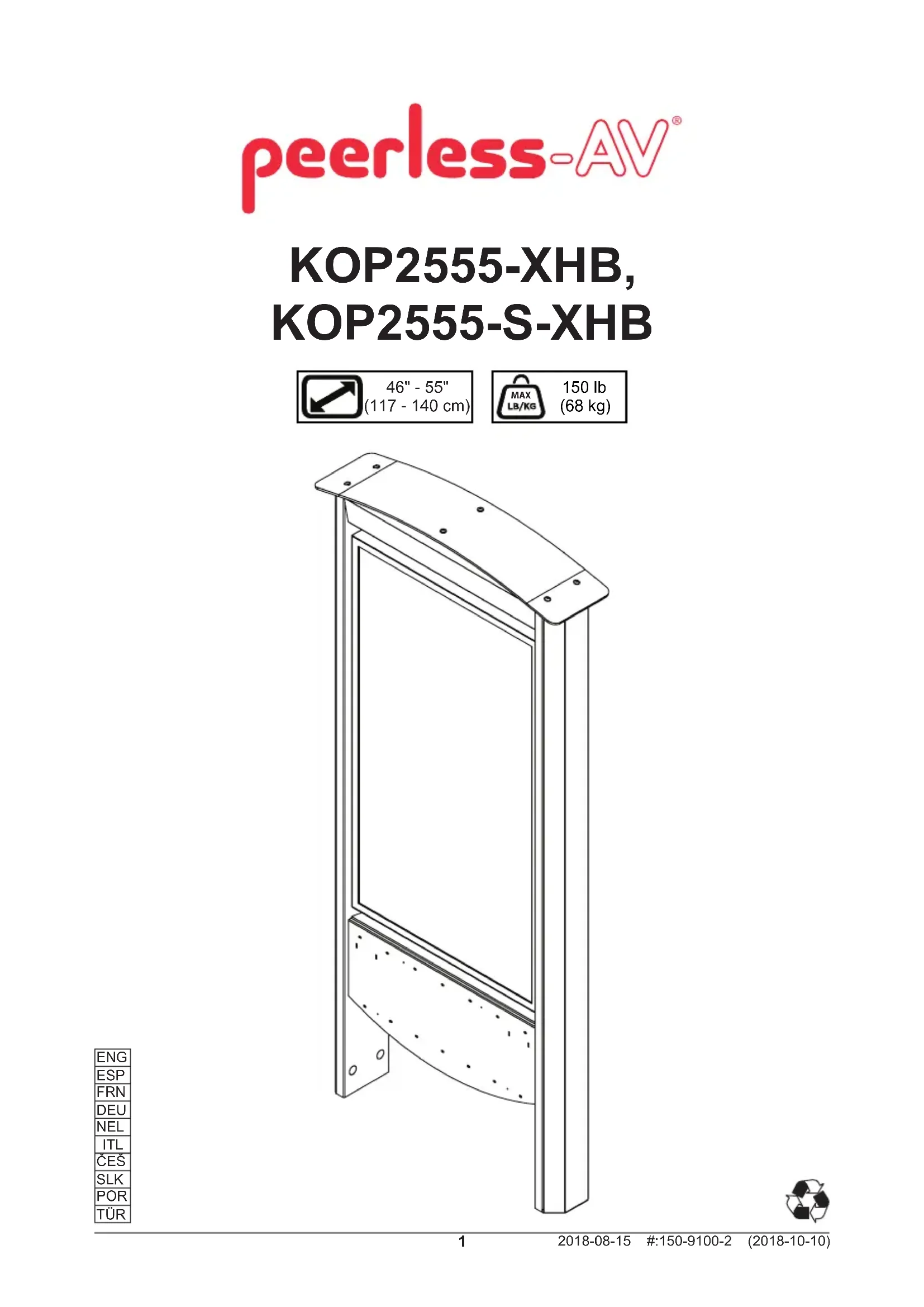 Retrouvez gratuitement la notice de l'appareil KOP2555XHB Peerless-AV au format PDF.