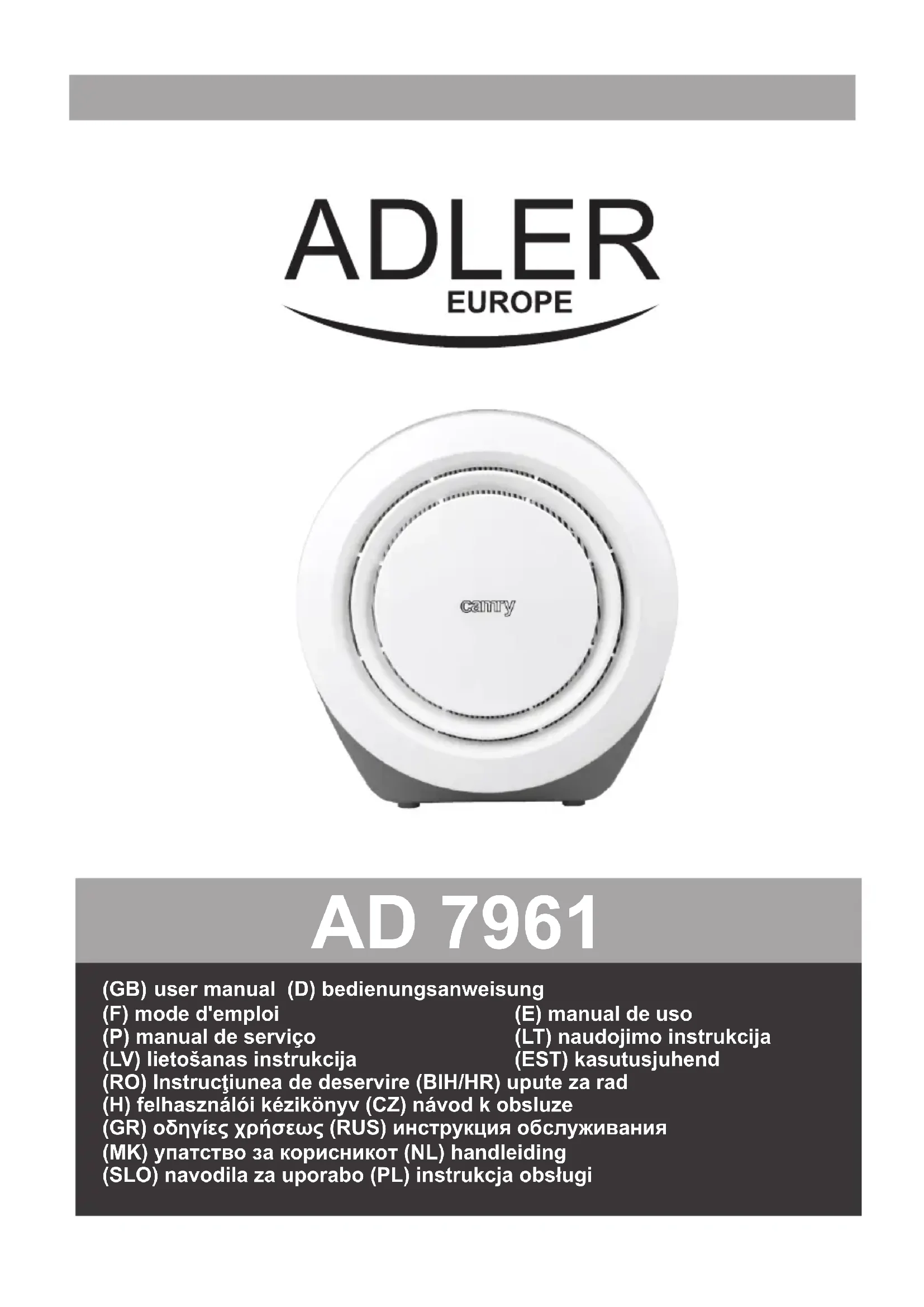 AD7961 - Purificateur d'air ADLER - Notice d'utilisation et mode d'emploi gratuit