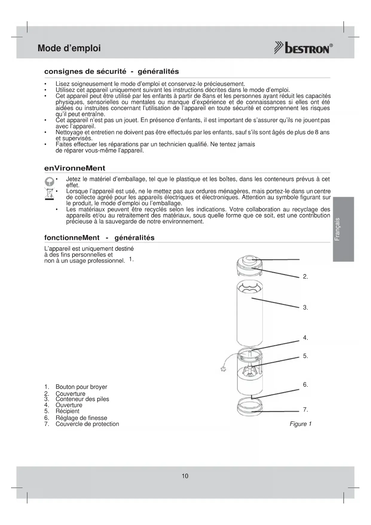 Fermer la salière ou poivrière avec le couvercle (7) lorsque le dispositif n’est pas en cours d’utilisation. conditions de gArAntie