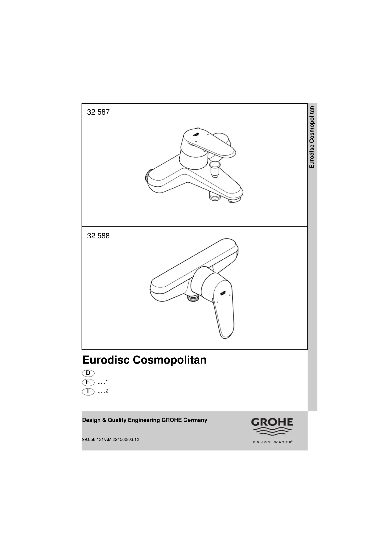 Retrouvez gratuitement la notice de l'appareil Eurodisc Cosmopolitan GROHE au format PDF.