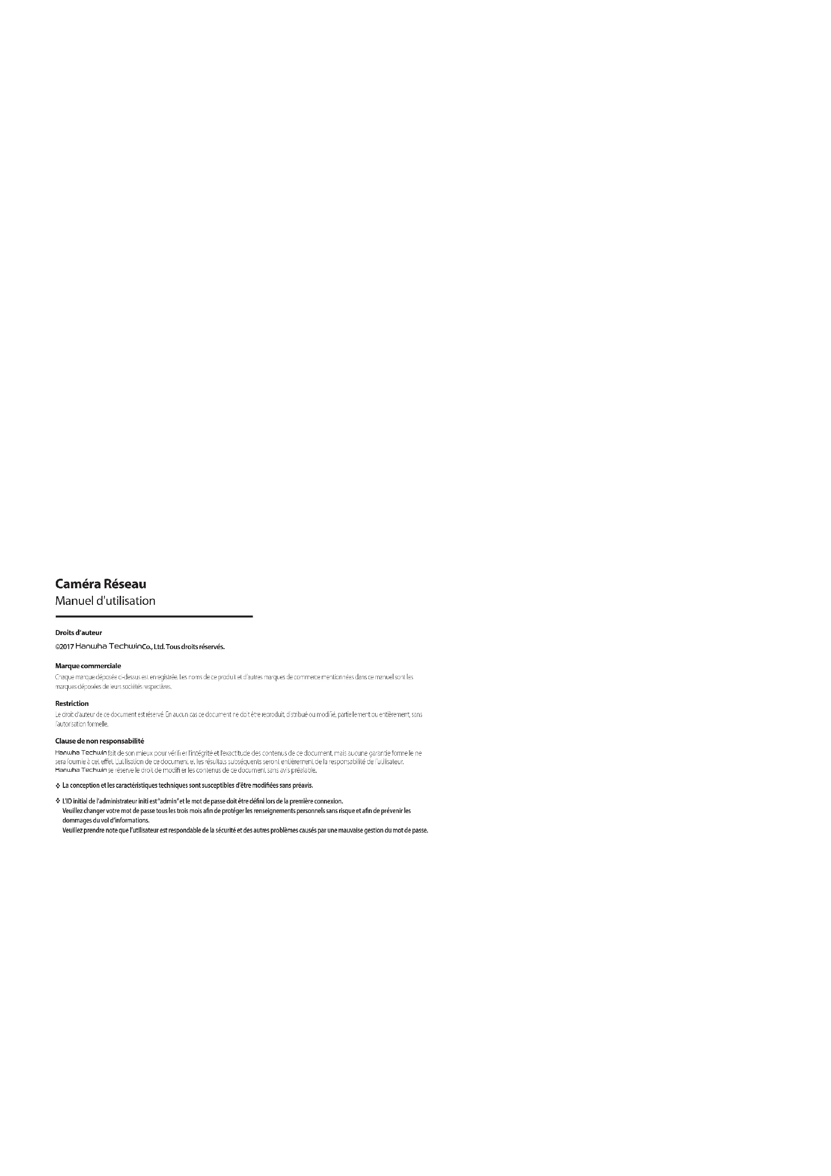 Hanwha et reprennez votre appareil électronique en main. Sur cette page sont publiés tous les documents nécessaires à l'utilisation de votre appareil XNP6370RH de la marque Hanwha.