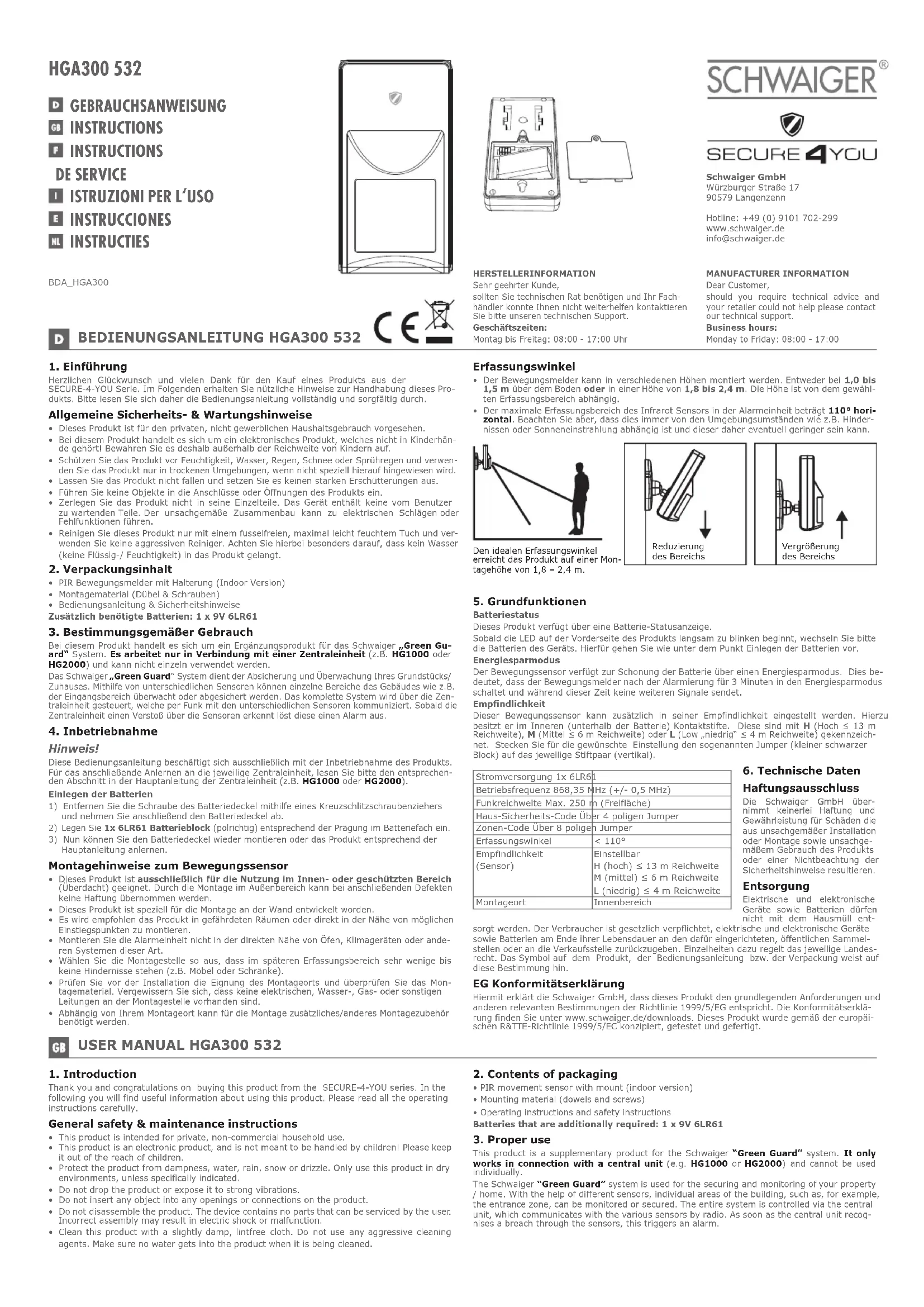 HGA300 532 - Détecteur de mouvements Schwaiger - Notice d'utilisation et mode d'emploi gratuit