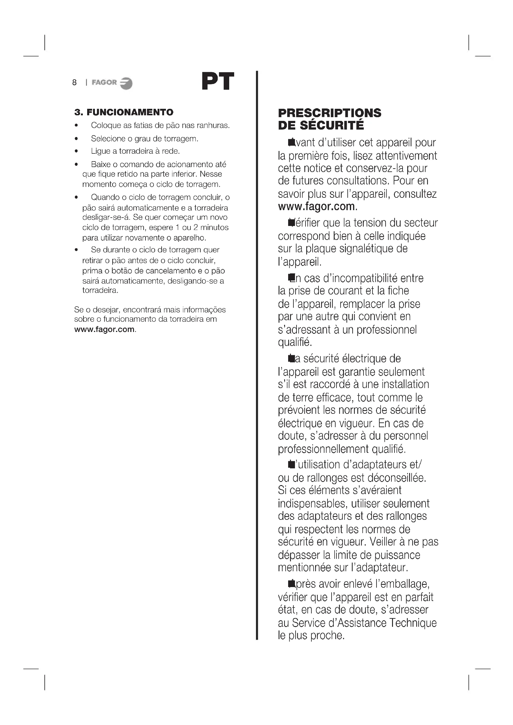 TT501LE - Grille-pain FAGOR - Notice d'utilisation et mode d'emploi gratuit