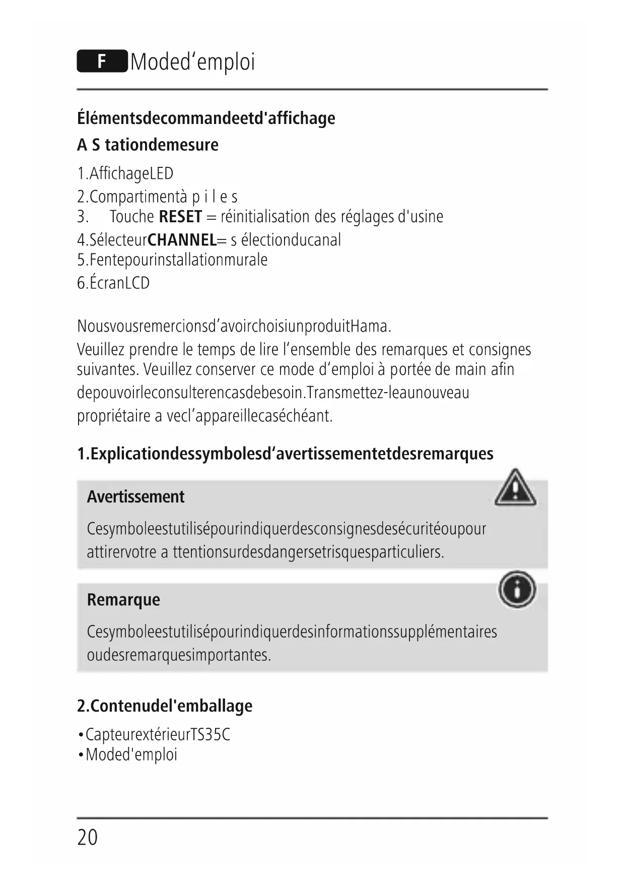 TS35C - Station Météo HAMA - Notice d'utilisation et mode d'emploi gratuit