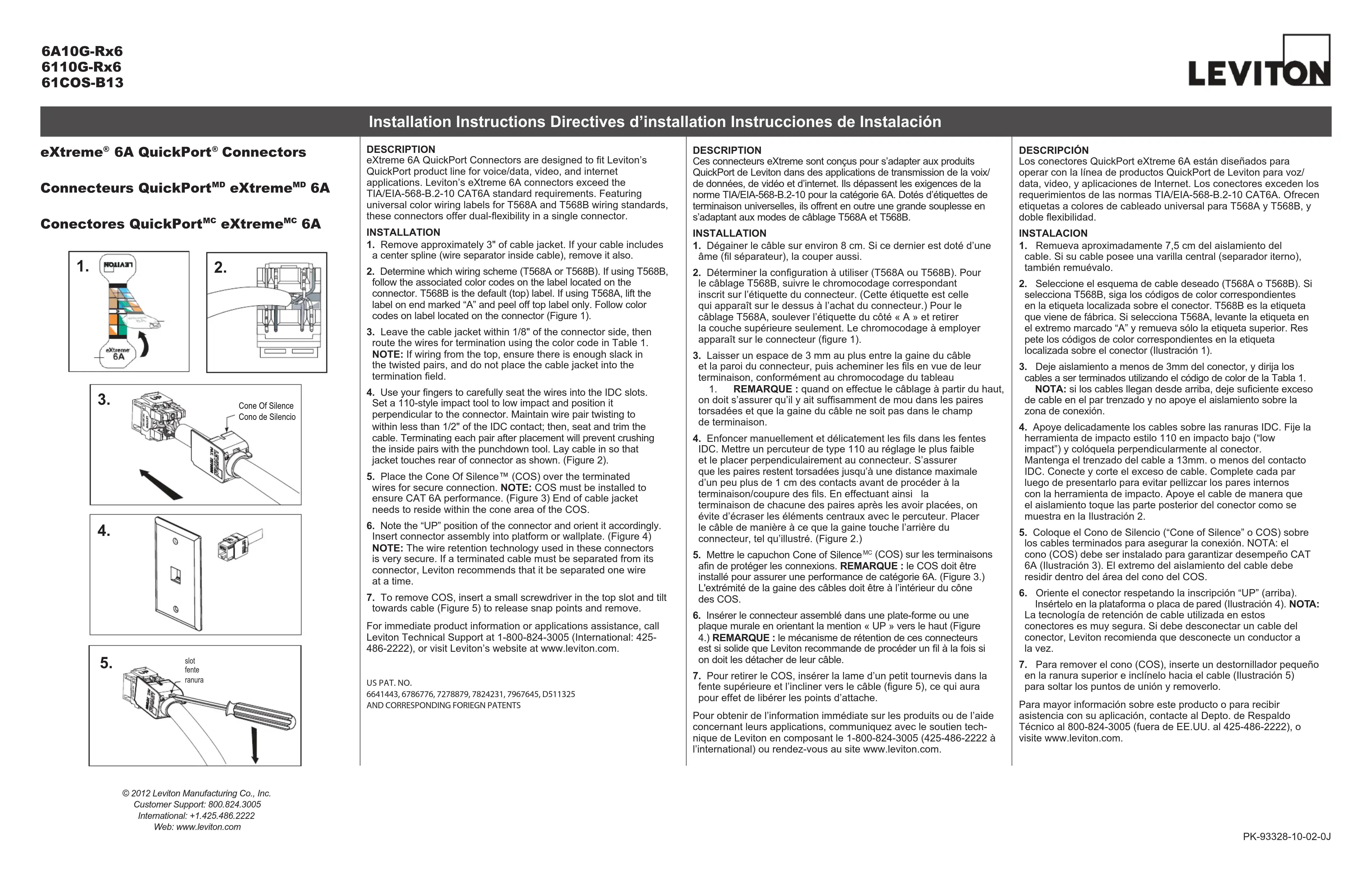 Ces connecteurs eXtreme sont conçus pour s'adapter aux produits QuickPort de Leviton dans des applications de transmission de la voix/ de données, de vidéo et d'internet. Ils dépassent les exigences de la norme TIA/EIA-568-B.2-10 pour la catégorie 6A. Dotés d'étiquettes de terminaison universelles, ils offrent en outre une grande souplesse en s'adaptant aux modes de câblage T568A et T568B.