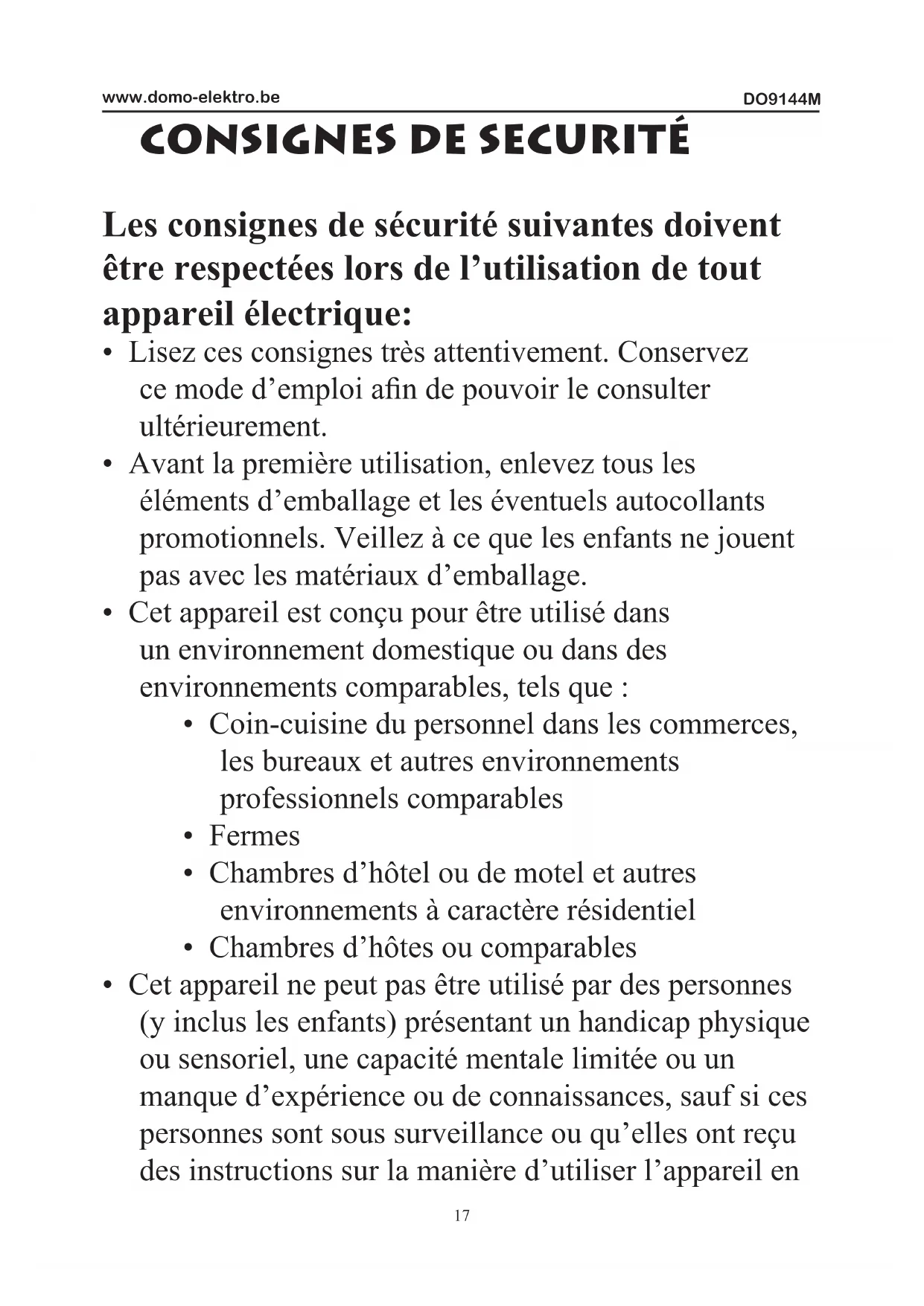 MODE D'EMPLOI DO9144M DOMO