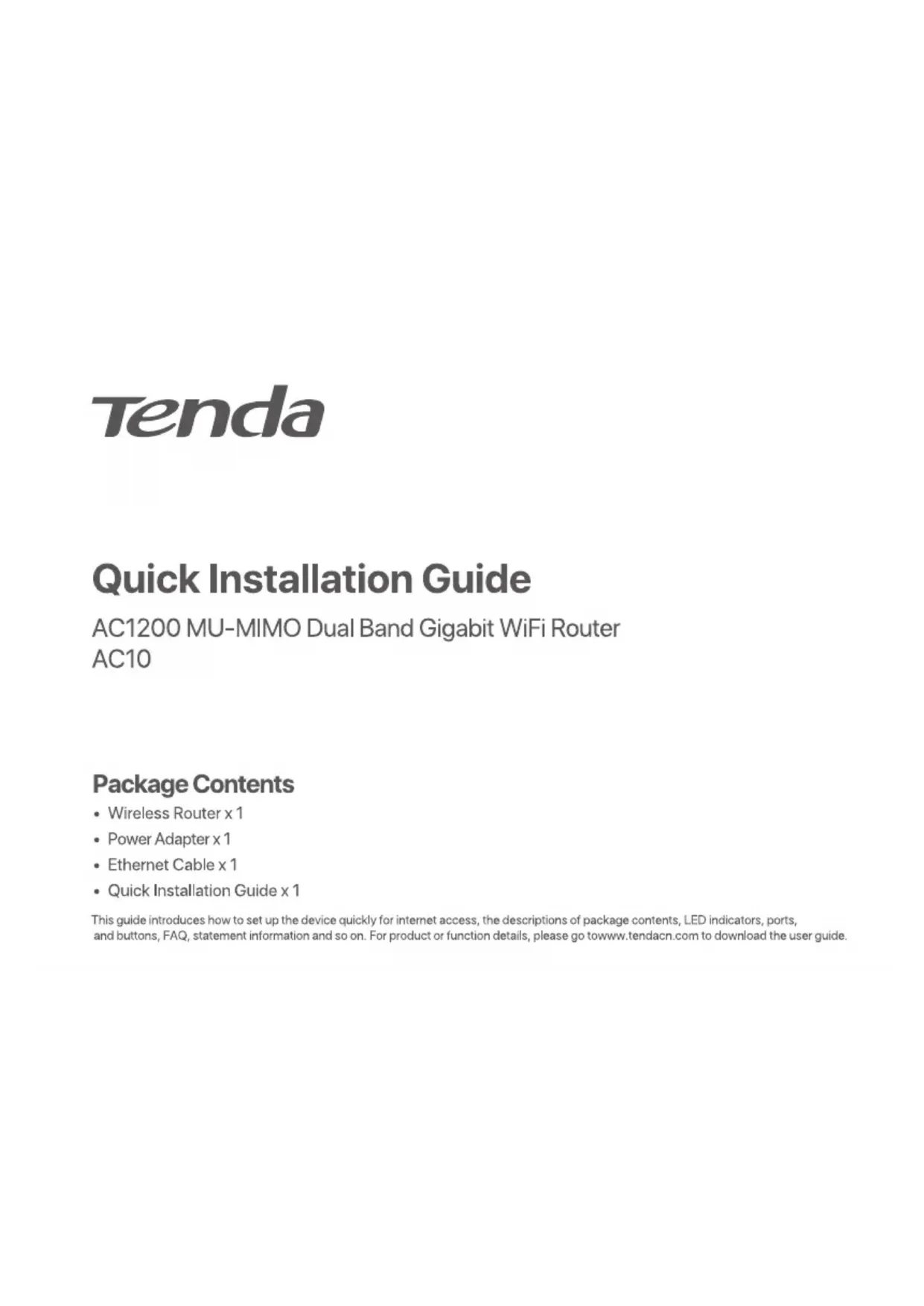 Retrouvez gratuitement la notice de l'appareil AC10 Tenda au format PDF.