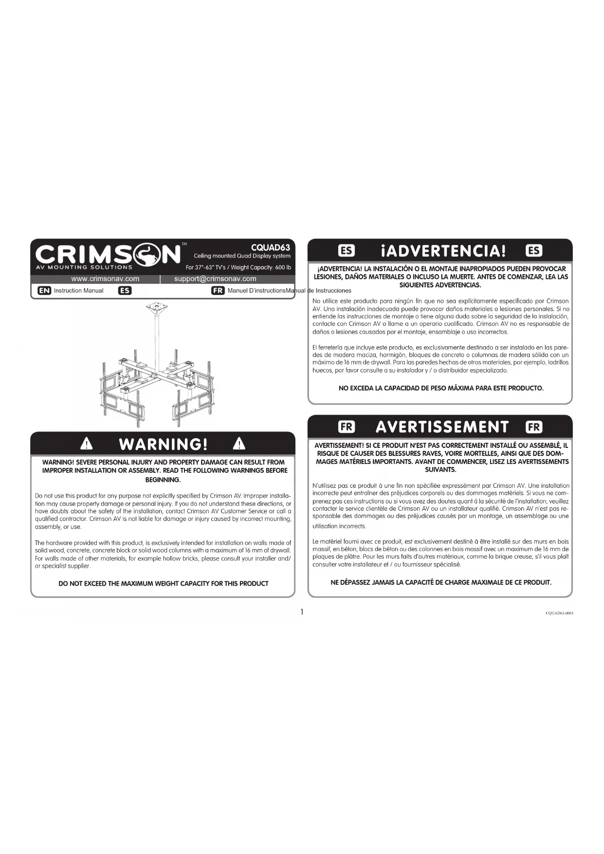 CQUAD63 - Support écran plat Crimson - Notice d'utilisation et mode d'emploi gratuit