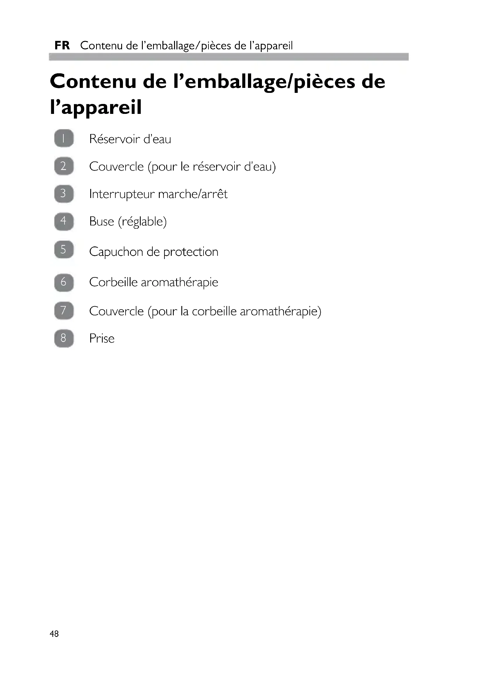 -N'utilisez pas d'huiles, d'herbes ou d'autres substances aromatiques pour remplacer l'eau.