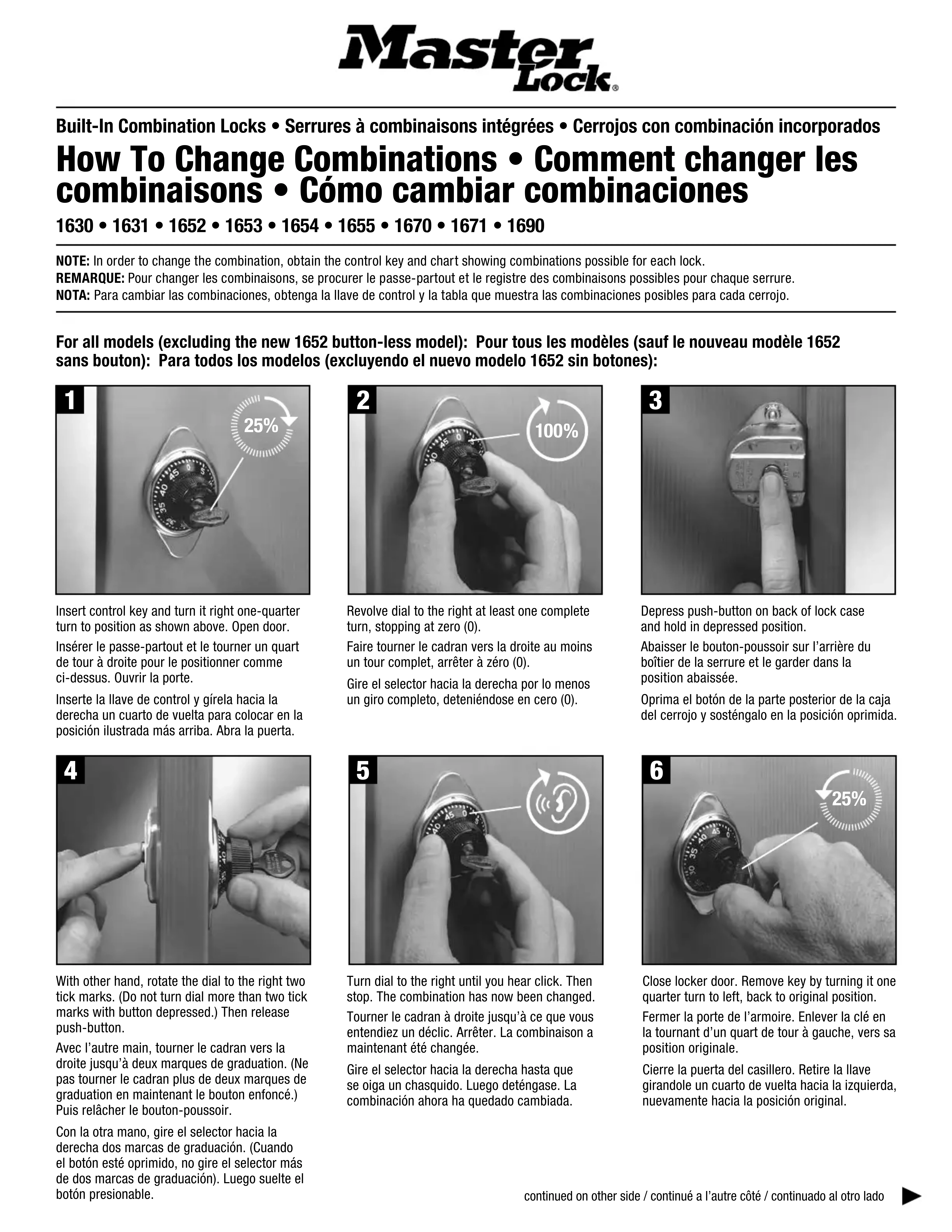 After you have changed the combination (for all models): Àpès avoir changé la combinaison (pour tous les modèles): Después de que changió la combinación (para todos los modelos):