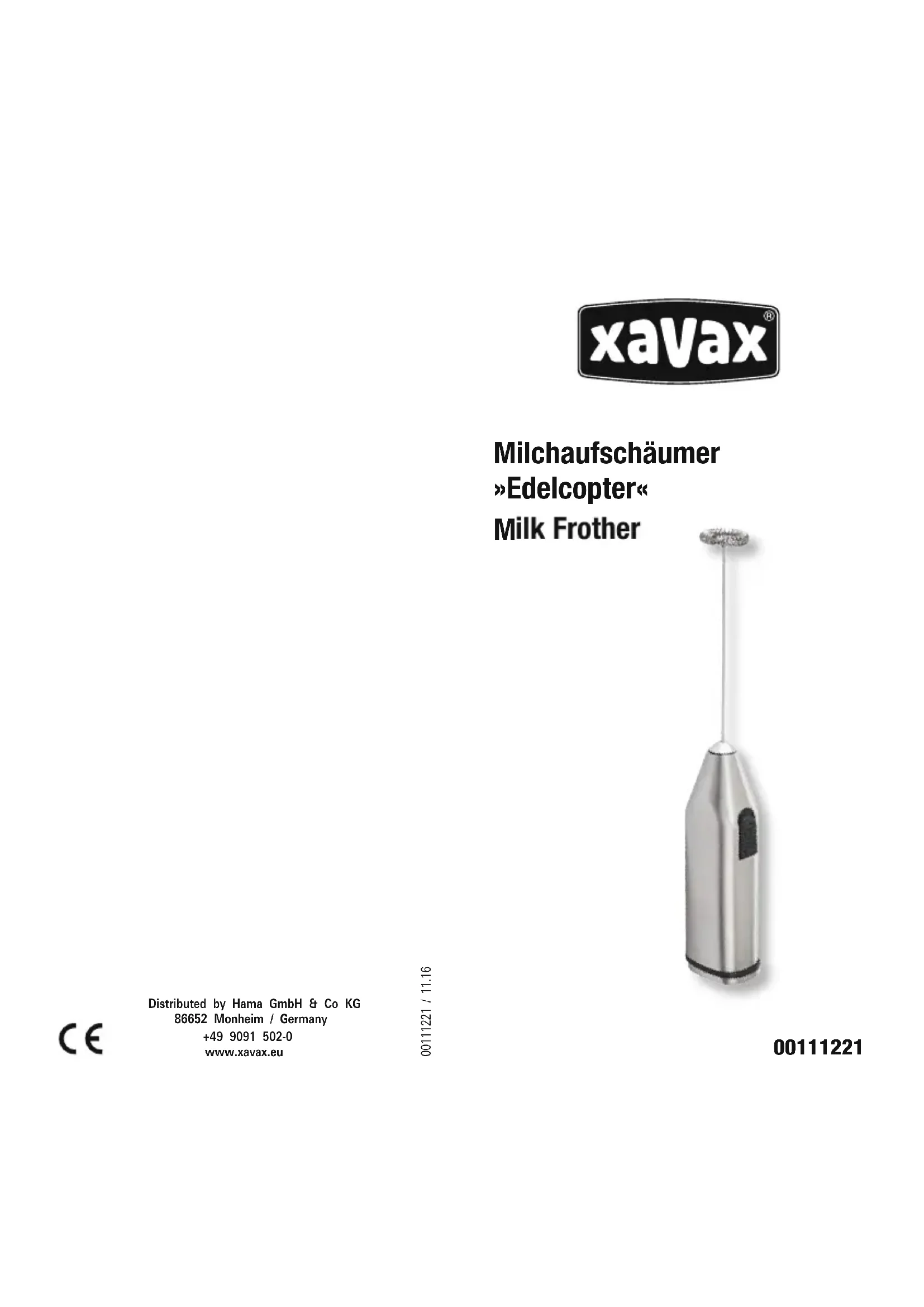 Edelcopter - Mousseur à lait Xavax - Notice d'utilisation et mode d'emploi gratuit