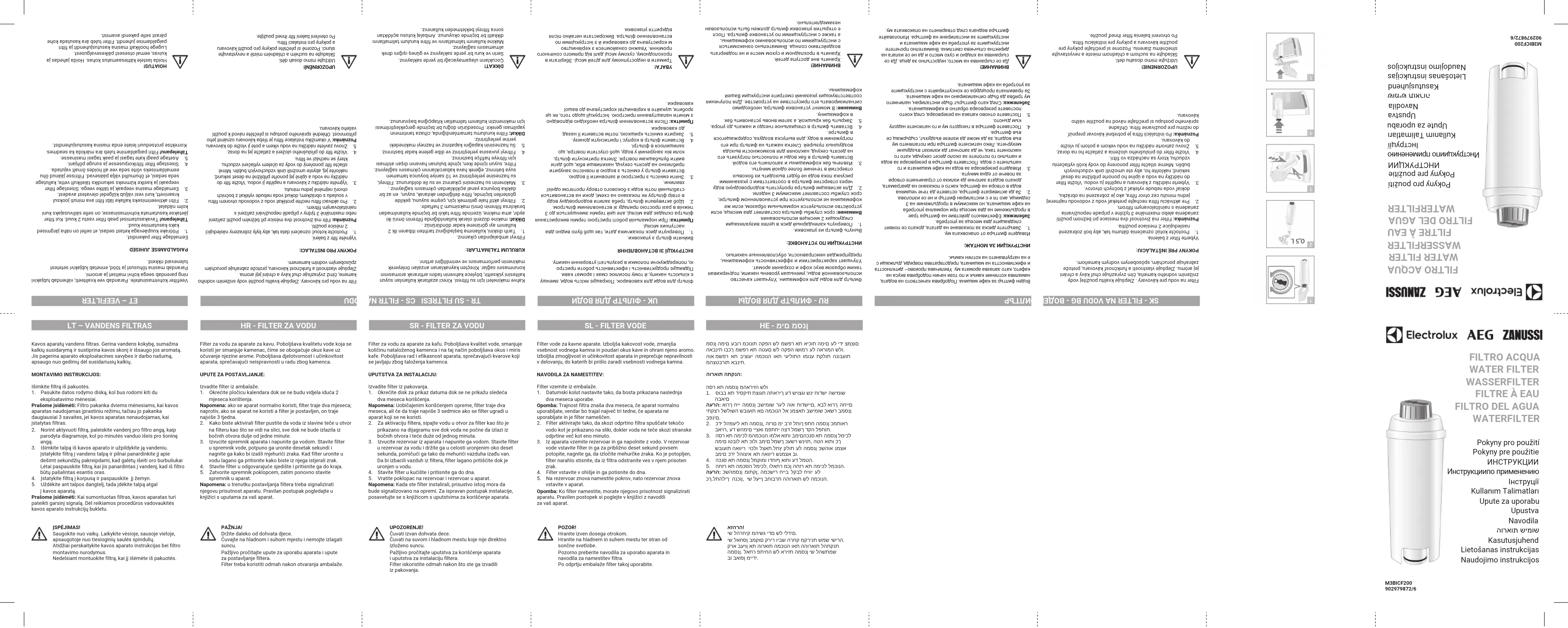 dans la machine. Nota Bene : Lorsque l'on installe le filtre, il faut en signaler la présence à l'appareil. Pour la procédure appropriée, consulter le livret d'instructions de votre machine. ATTENTION ! Tenir hors de portée des enfants. Conserver en lieu frais et sec à l'abri des rayons du soleil. Lire attentivement le mode d'emploi de la machine et les instructions d'installation du filtre. Utiliser immédiatement le filtre une fois l'emballage ouvert. Waterfilter voor koffiemachines. Verbetert de kwaliteit van het water, beperkt kalkvorming, verbetert de smaak van de koffie en behoudt het aroma. Verbetert de prestaties en de doeltreffendheid van de machine, vermijdt storingen te wijten aan kalkvorming. AANWIJZINGEN VOOR DE INSTALLATIE: Haal de filter uit de verpakking.