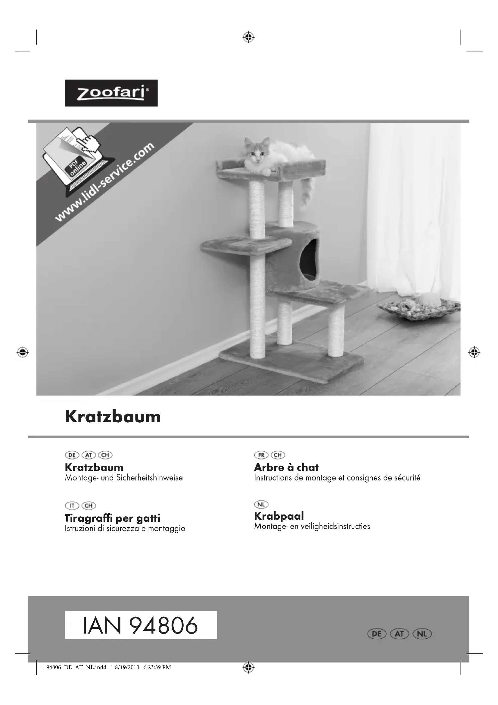 IAN 94806 - Arbre à chat ZOOFARI - Notice d'utilisation et mode d'emploi gratuit