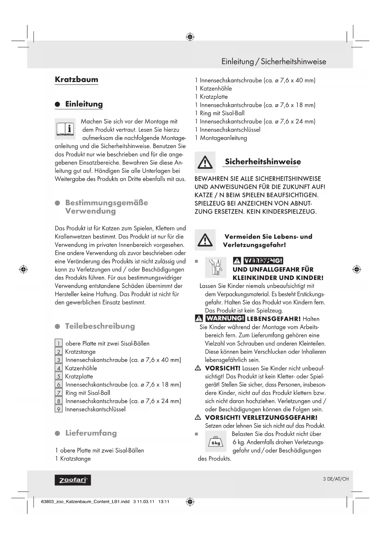 IAN 63803 - Arbre à chat ZOOFARI - Notice d'utilisation et mode d'emploi gratuit