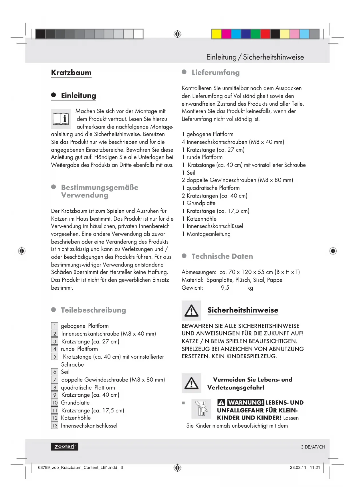 IAN 63799 - Arbre à chat ZOOFARI - Notice d'utilisation et mode d'emploi gratuit