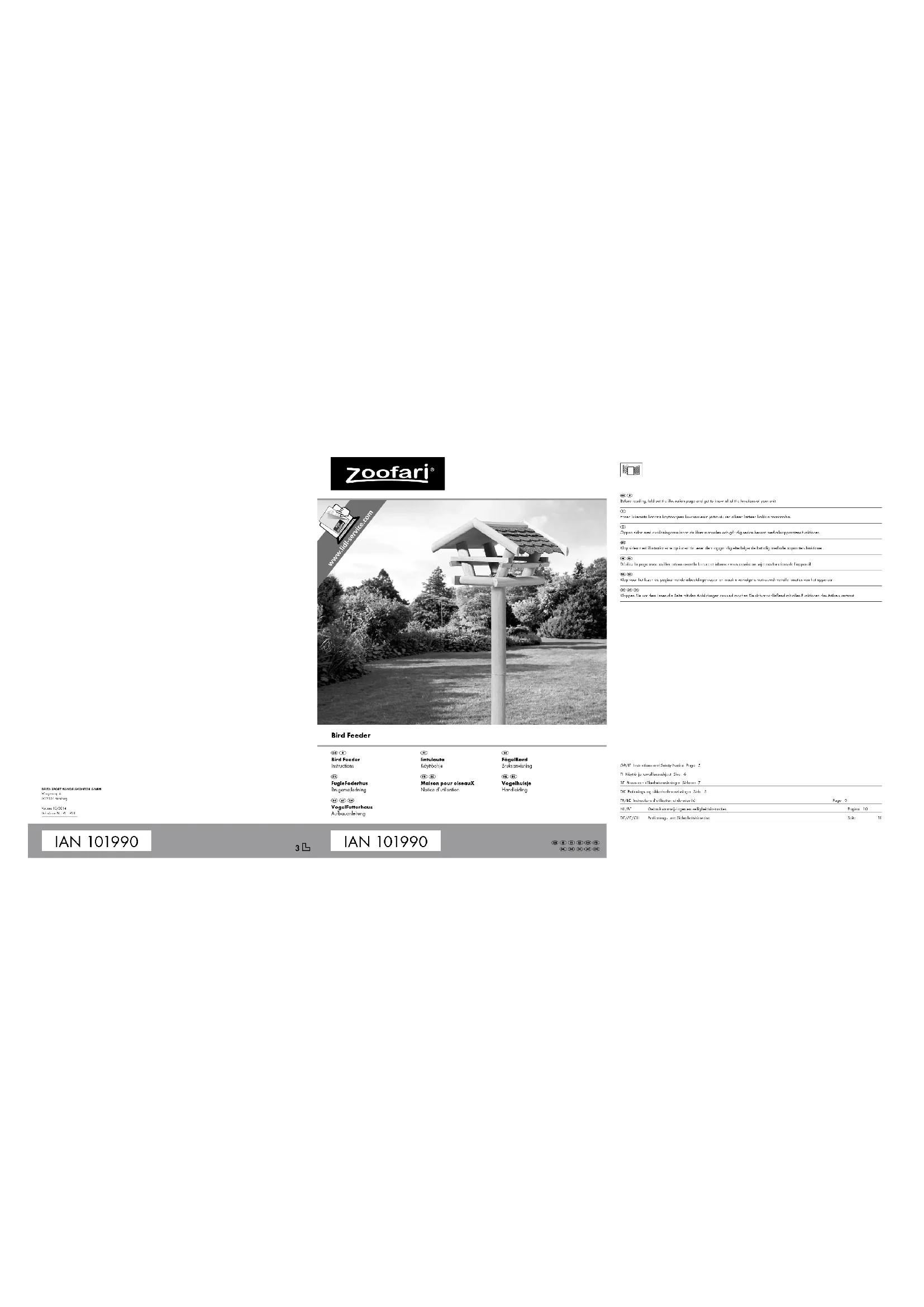 IAN 101990 - Nourrisseur pour oiseaux ZOOFARI - Notice d'utilisation et mode d'emploi gratuit