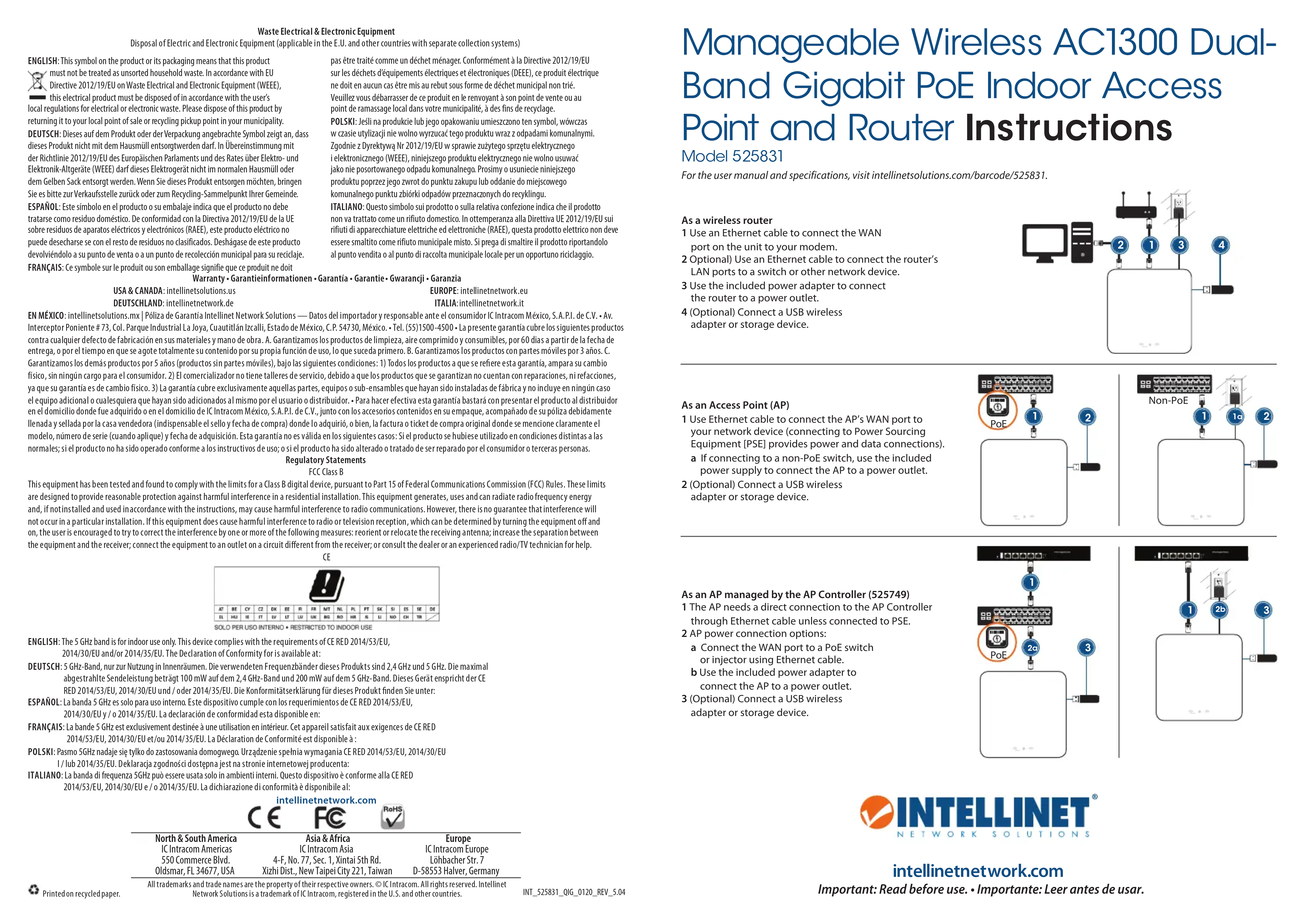525831 - Point d'accès Intellinet - Notice d'utilisation et mode d'emploi gratuit