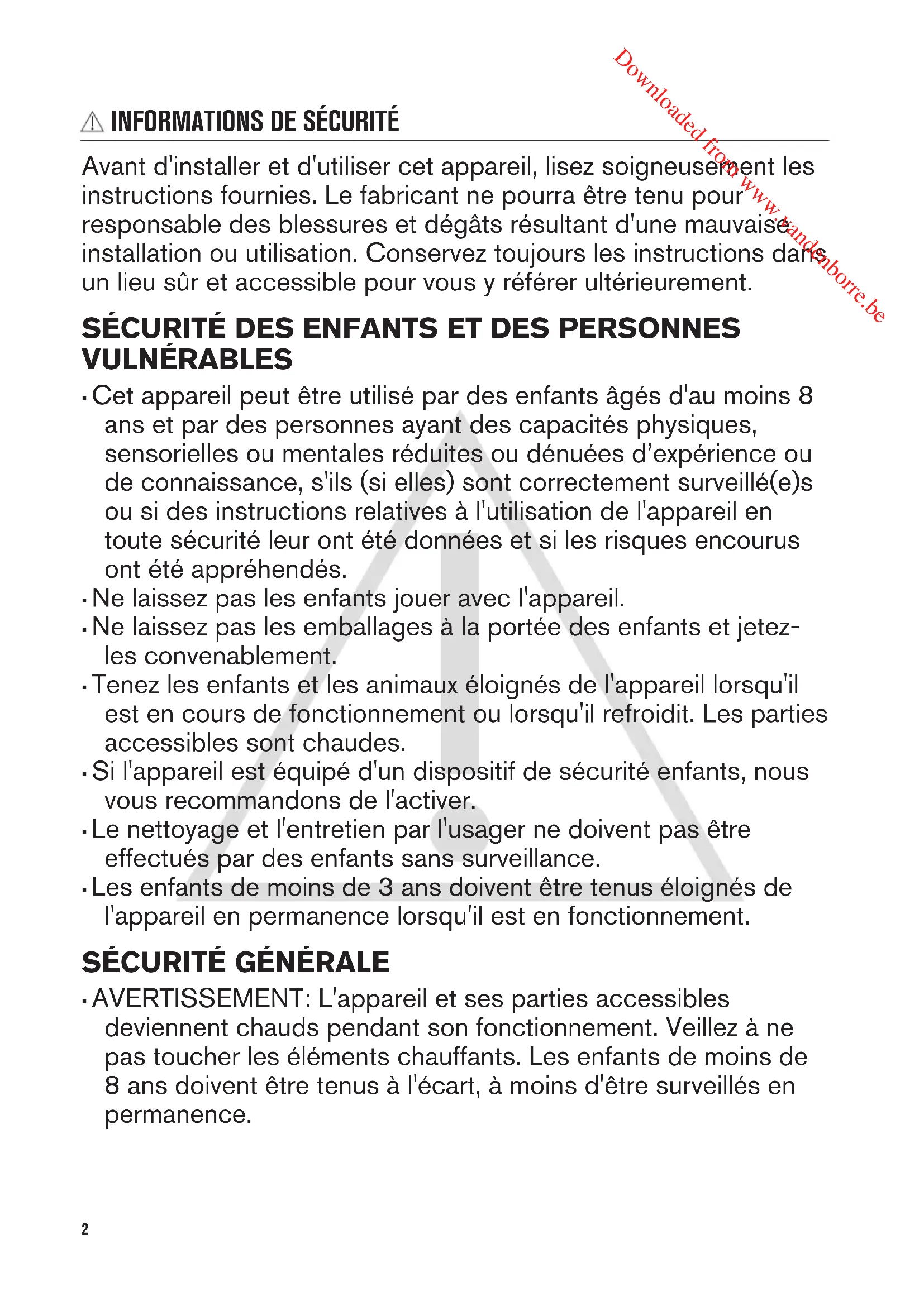 Downloaded from www.vandenborre.be• Ne faites pas fonctionner l'appareil avec un minuteur externe ou un système de commande à distance.