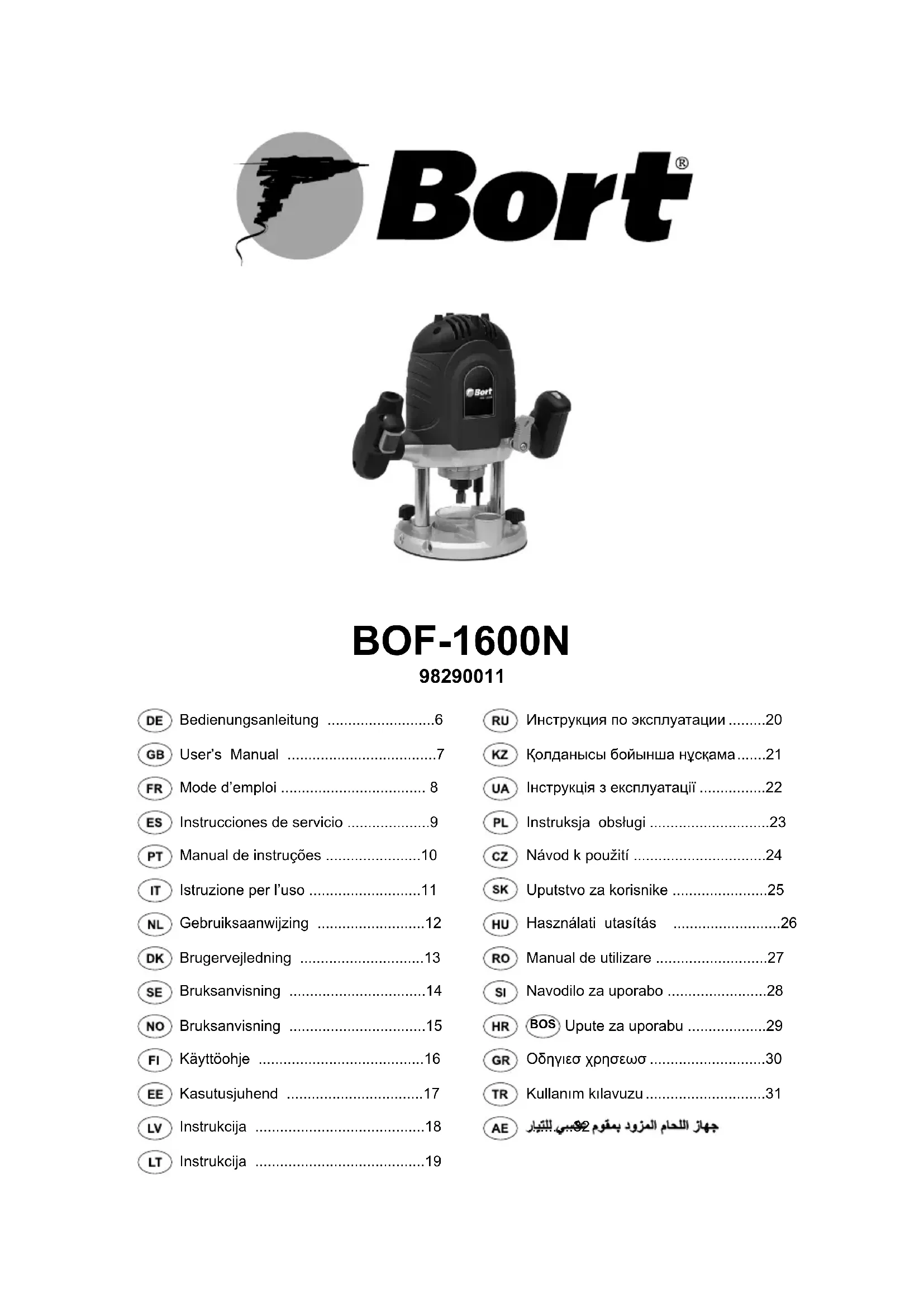 Retrouvez gratuitement la notice de l'appareil BOF1600N Bort au format PDF.