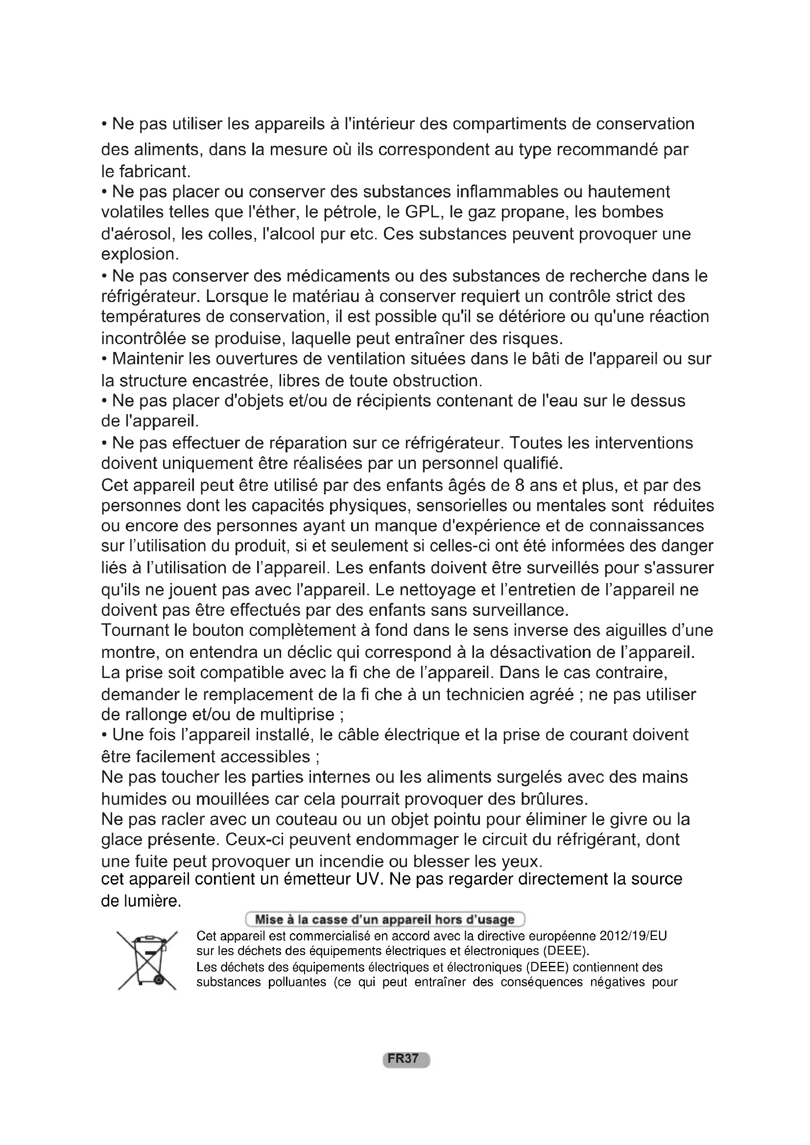 $4- incendie. FR36des aliments, dans la mesure où ils correspondent au type recommandé par le fabricant. tement r, le pétrole, le GPL, le gaz propane, les bombes