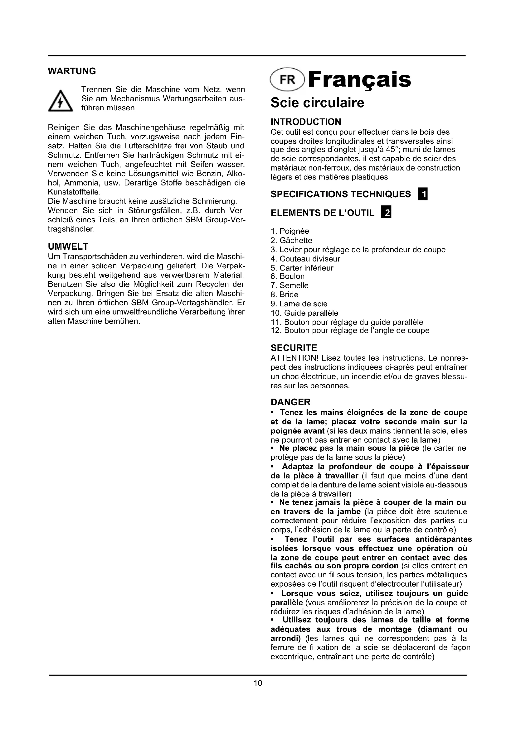 - SBM Group ne peut se porter garant du bon fonctionnement de cet outil que s'il a eté utilisé avec les accessoires d'origine