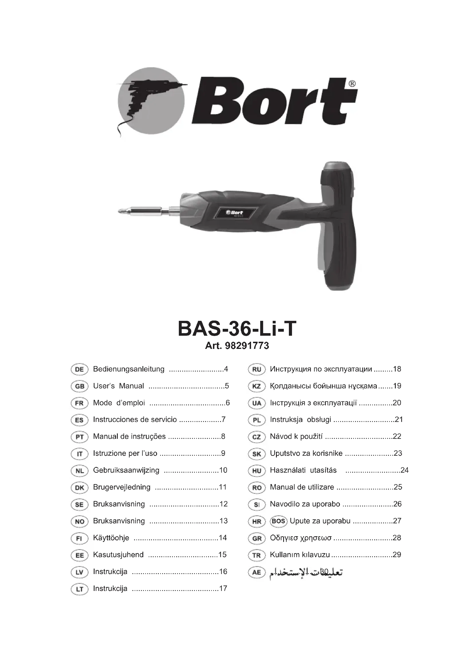 Retrouvez gratuitement la notice de l'appareil BAS36LIT Bort au format PDF.
