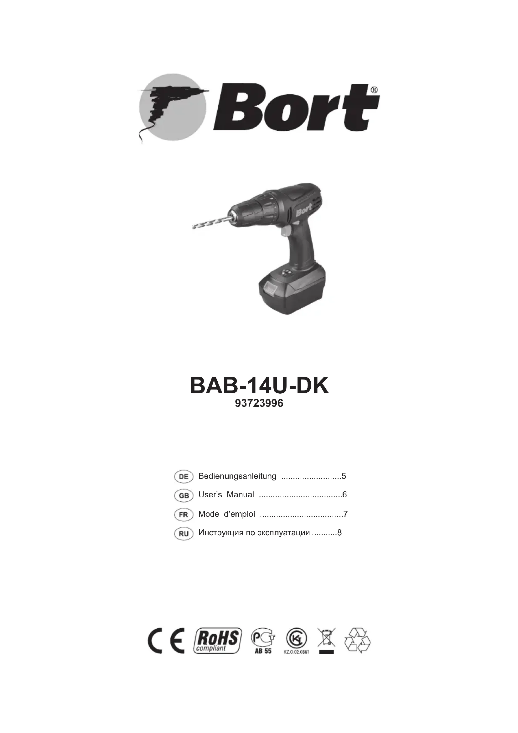 BAB14UDK - Perceuse Bort - Notice d'utilisation et mode d'emploi gratuit