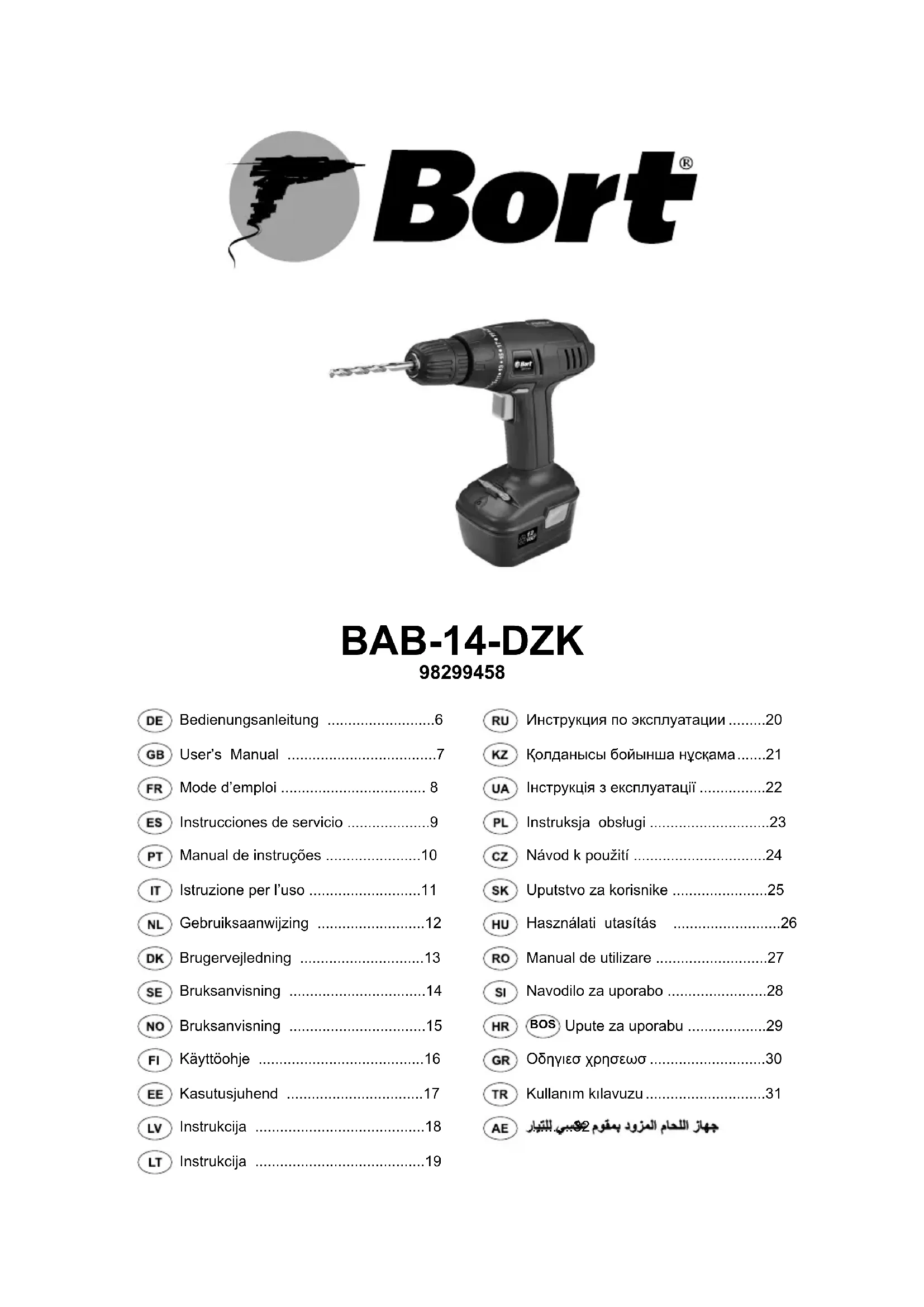 BAB14DZK - Perceuse Bort - Notice d'utilisation et mode d'emploi gratuit