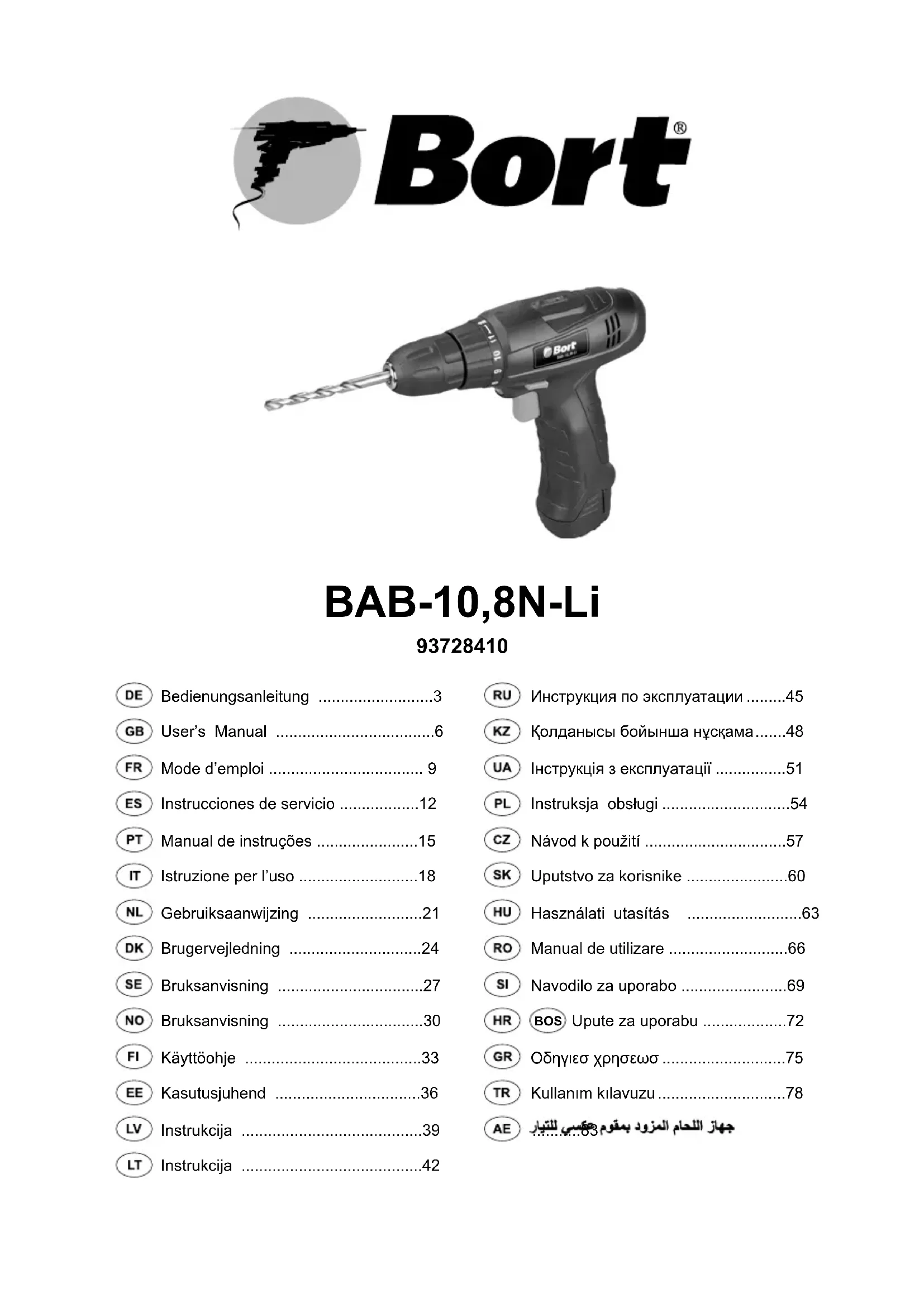 BAB10.8NLI - Perceuse Bort - Notice d'utilisation et mode d'emploi gratuit