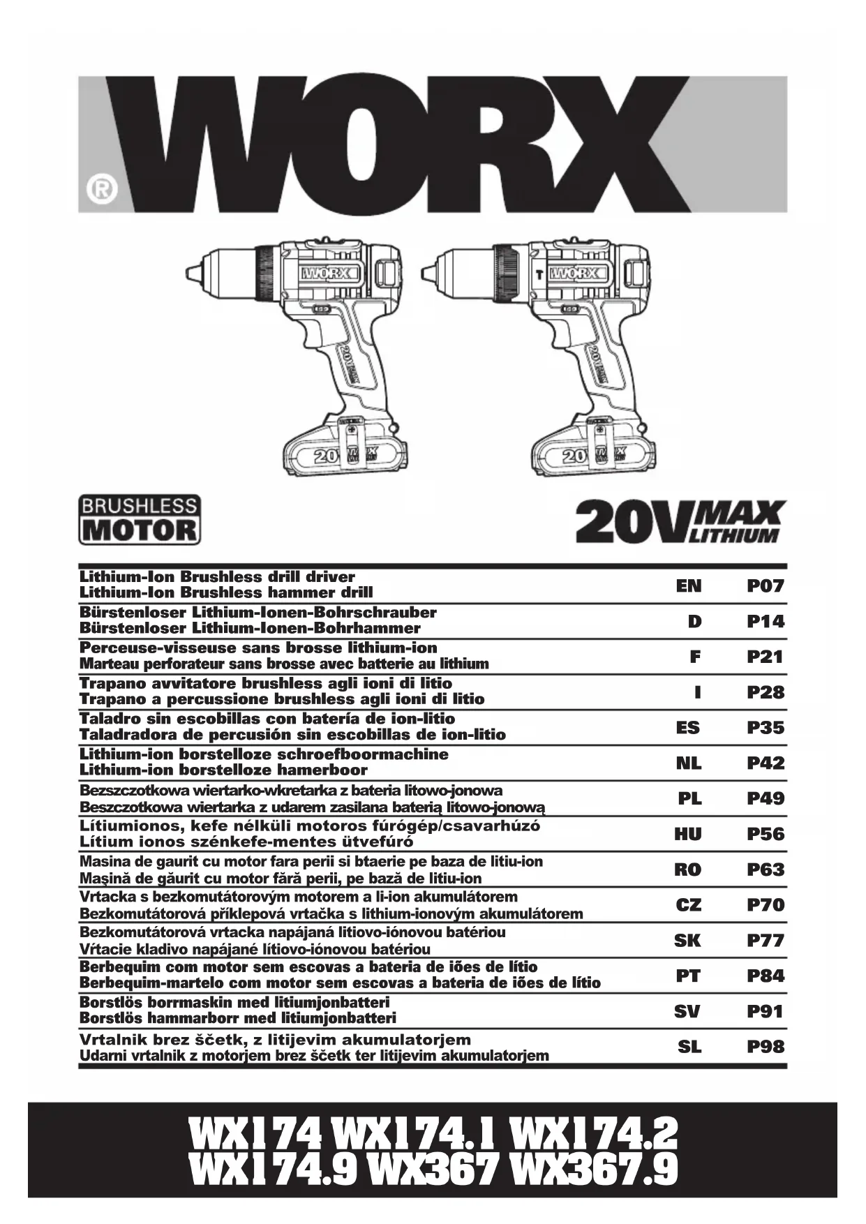 WX367.9 - Perceuse WORX - Notice d'utilisation et mode d'emploi gratuit