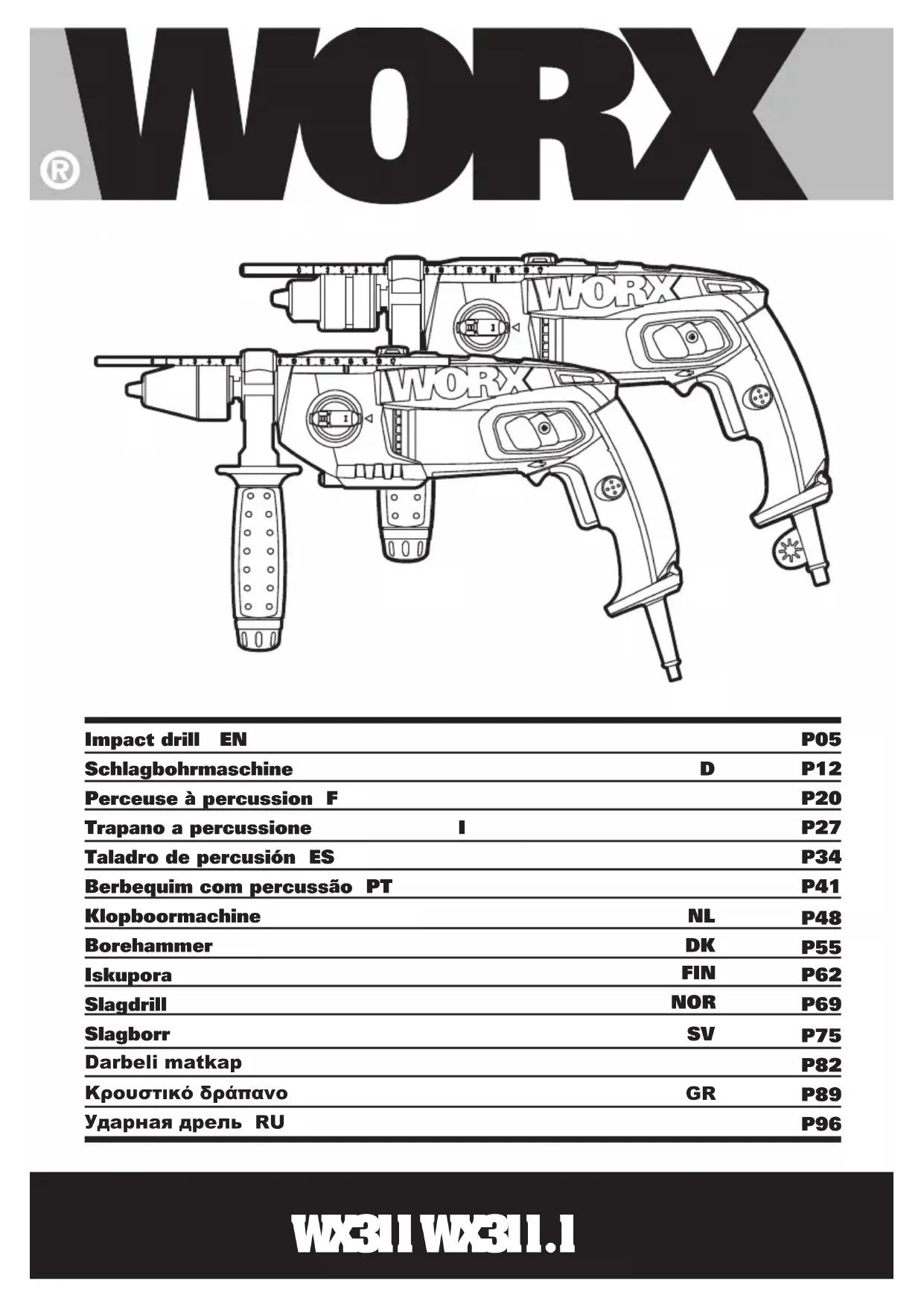 Téléchargez la notice de votre Perceuse au format PDF gratuitement ! Retrouvez votre notice WX311 - WORX et reprennez votre appareil électronique en main. Sur cette page sont publiés tous les documents nécessaires à l'utilisation de votre appareil WX311 de la marque WORX.