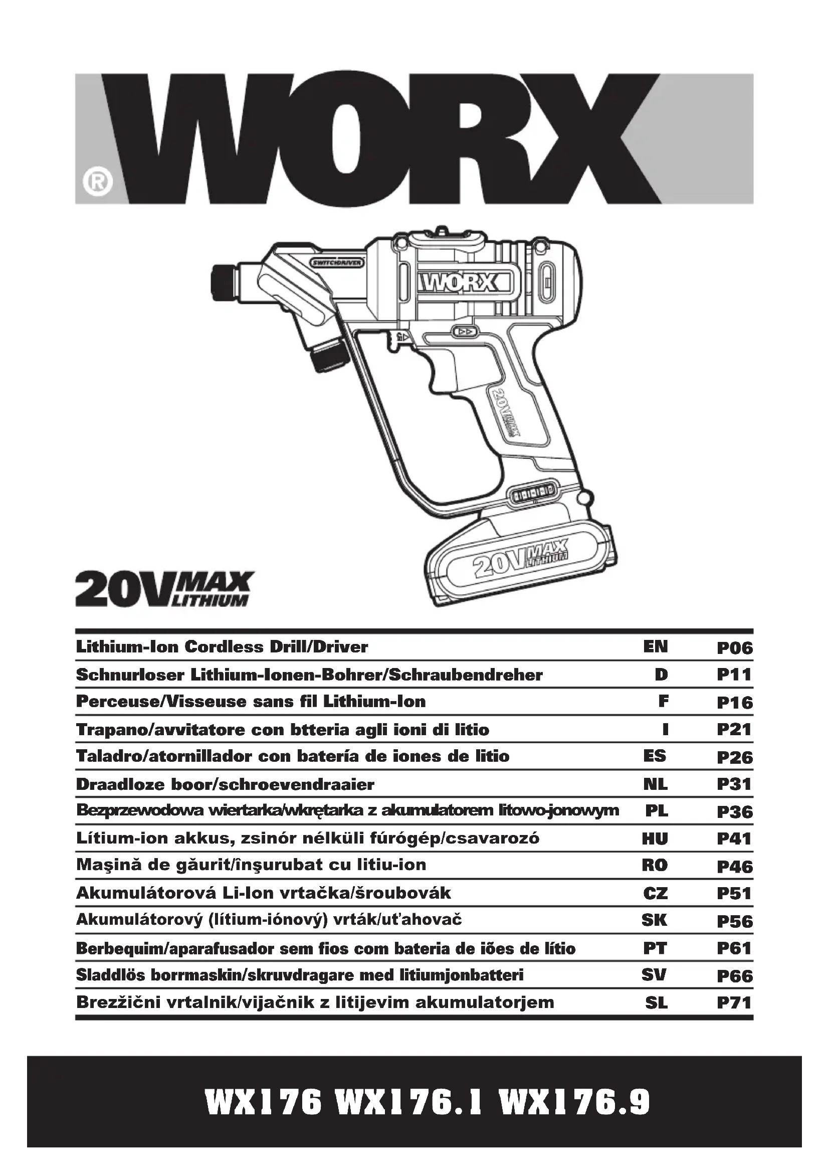 WX176.9 - Perceuse WORX - Notice d'utilisation et mode d'emploi gratuit
