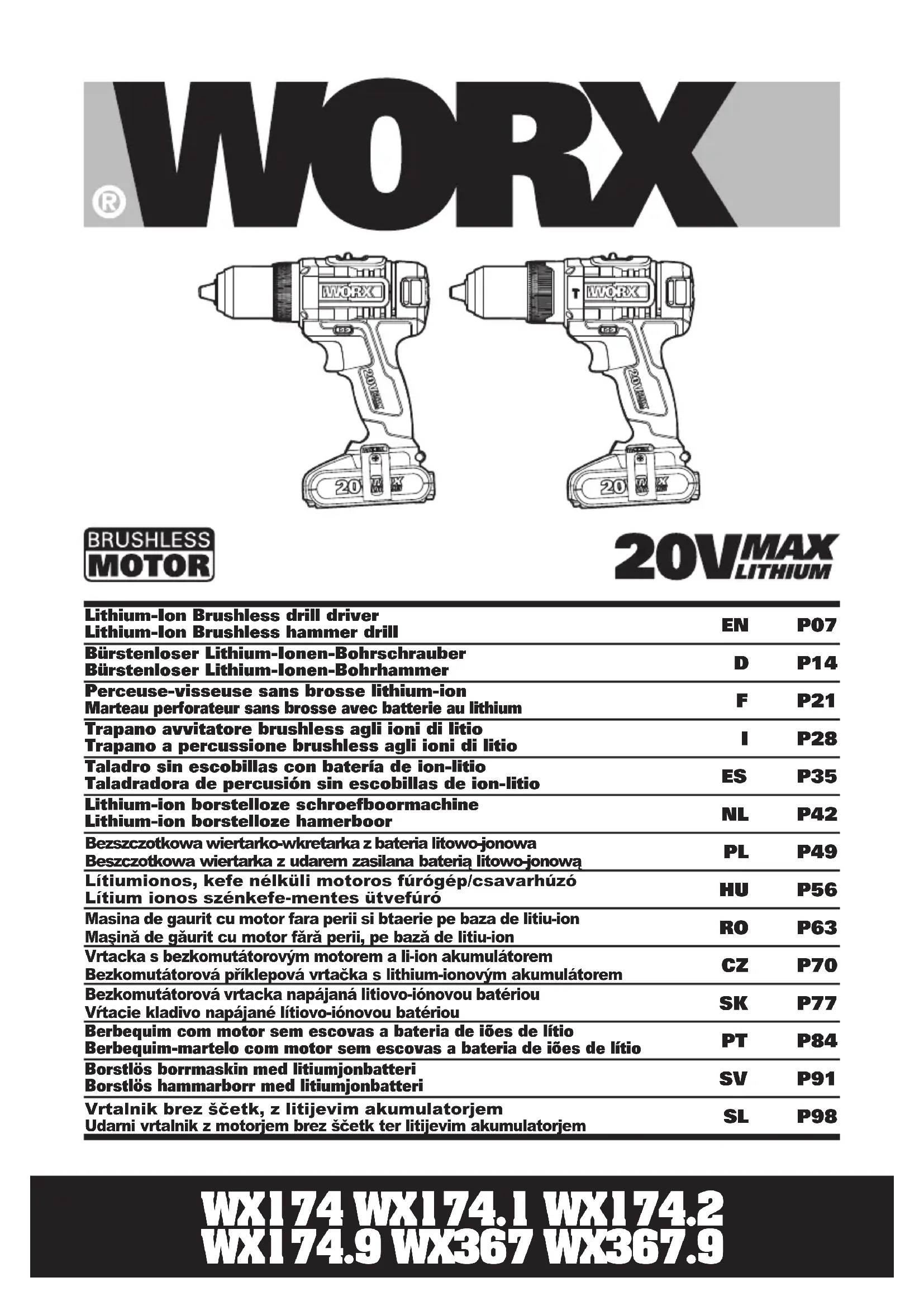 WX174.2 - Perceuse WORX - Notice d'utilisation et mode d'emploi gratuit