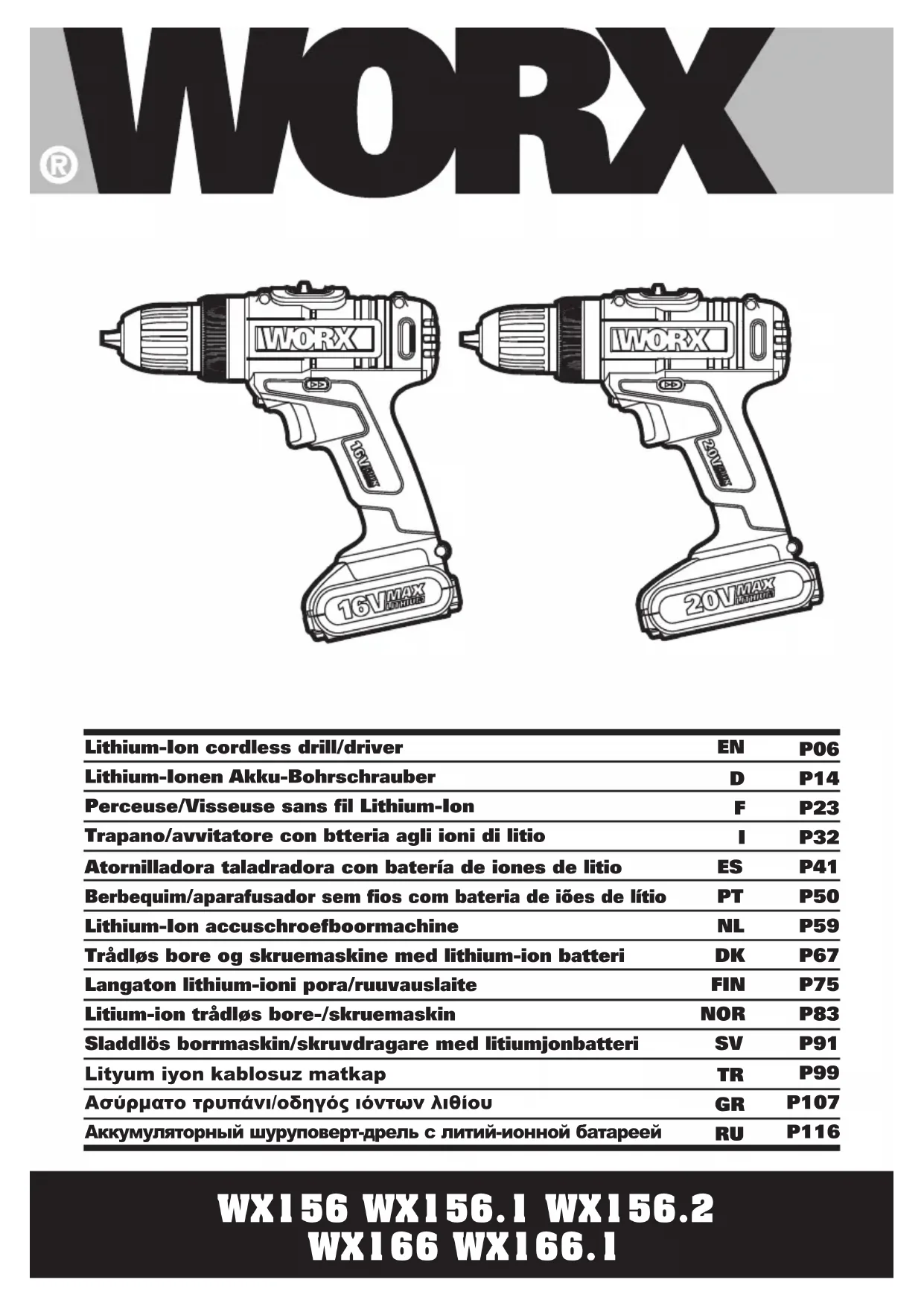 WX166.1 - Perceuse WORX - Notice d'utilisation et mode d'emploi gratuit