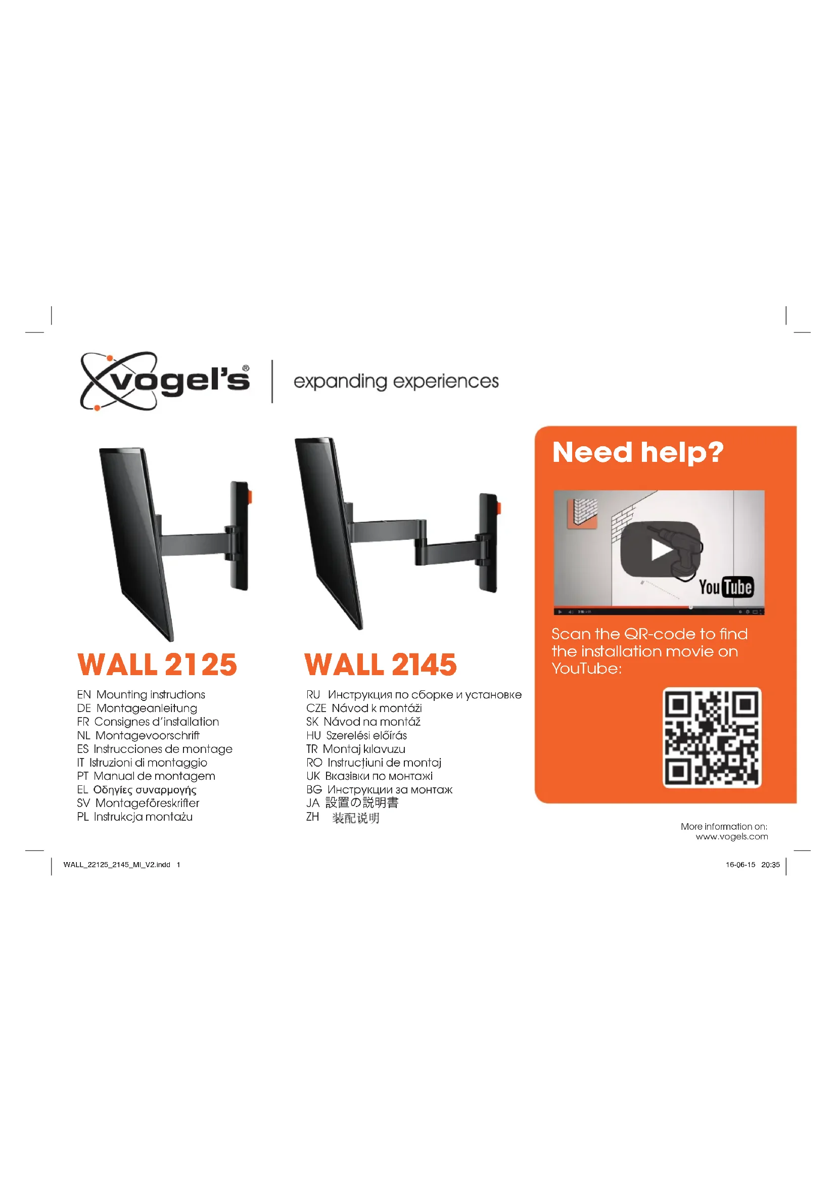 Retrouvez gratuitement la notice de l'appareil Wall 2125 VOGELS au format PDF.
