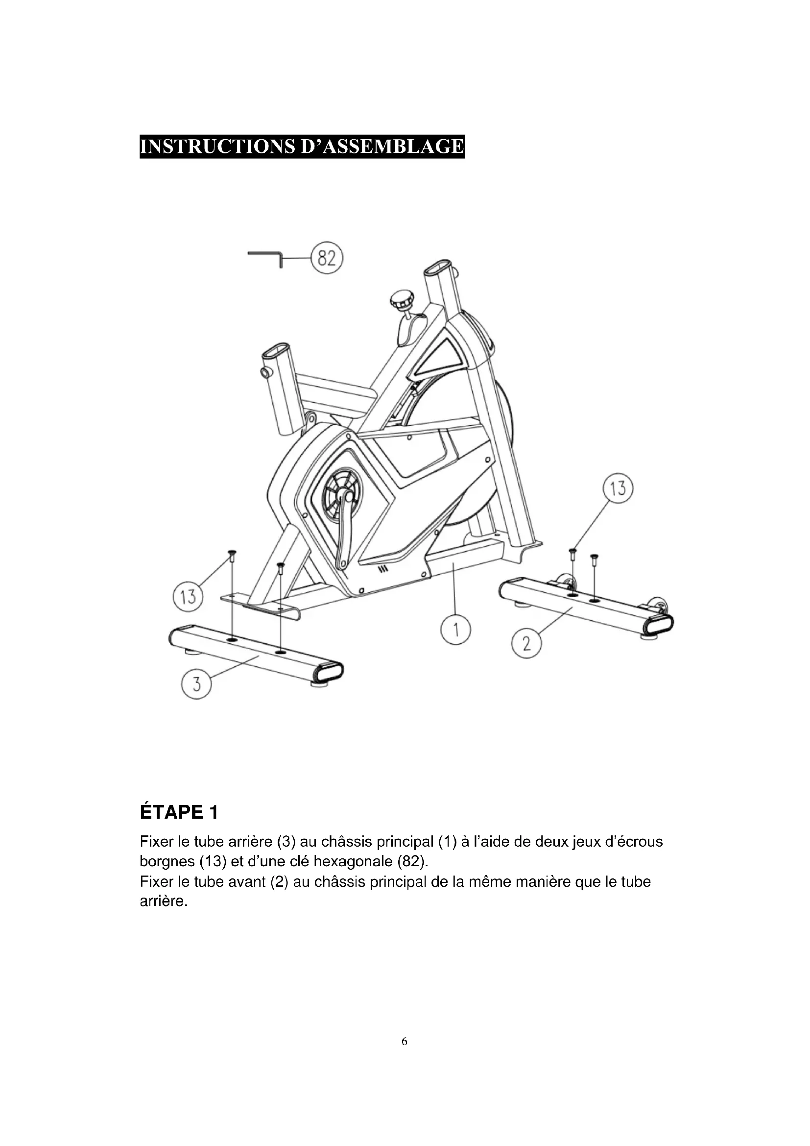 Fixer le tube arrêté (3) au chassis principal (1) à l'aide de deux tours d'écrous borgnes (13) et d'une clé hexagonale (82).