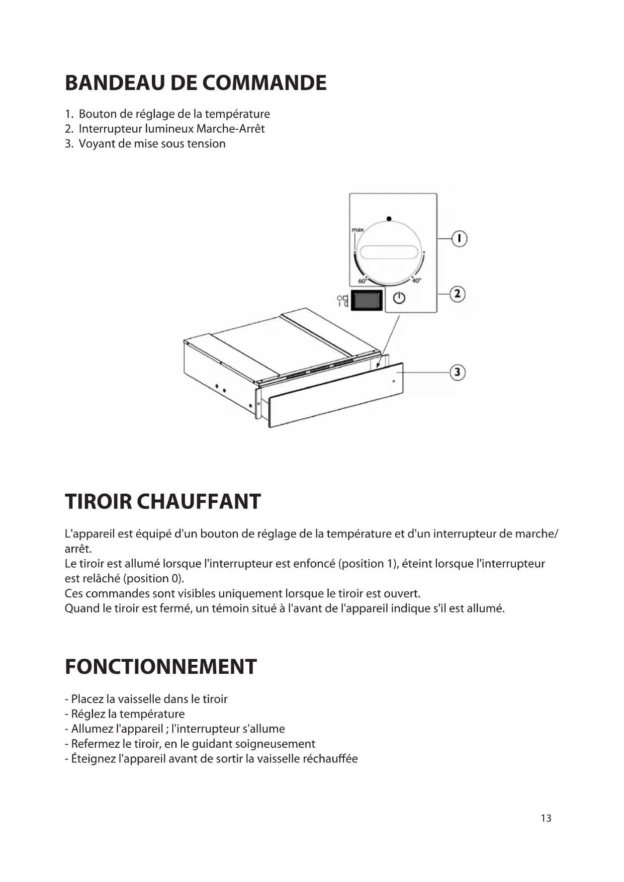 max 60° 40° ① ② ③TIROIR CHAUFFANT