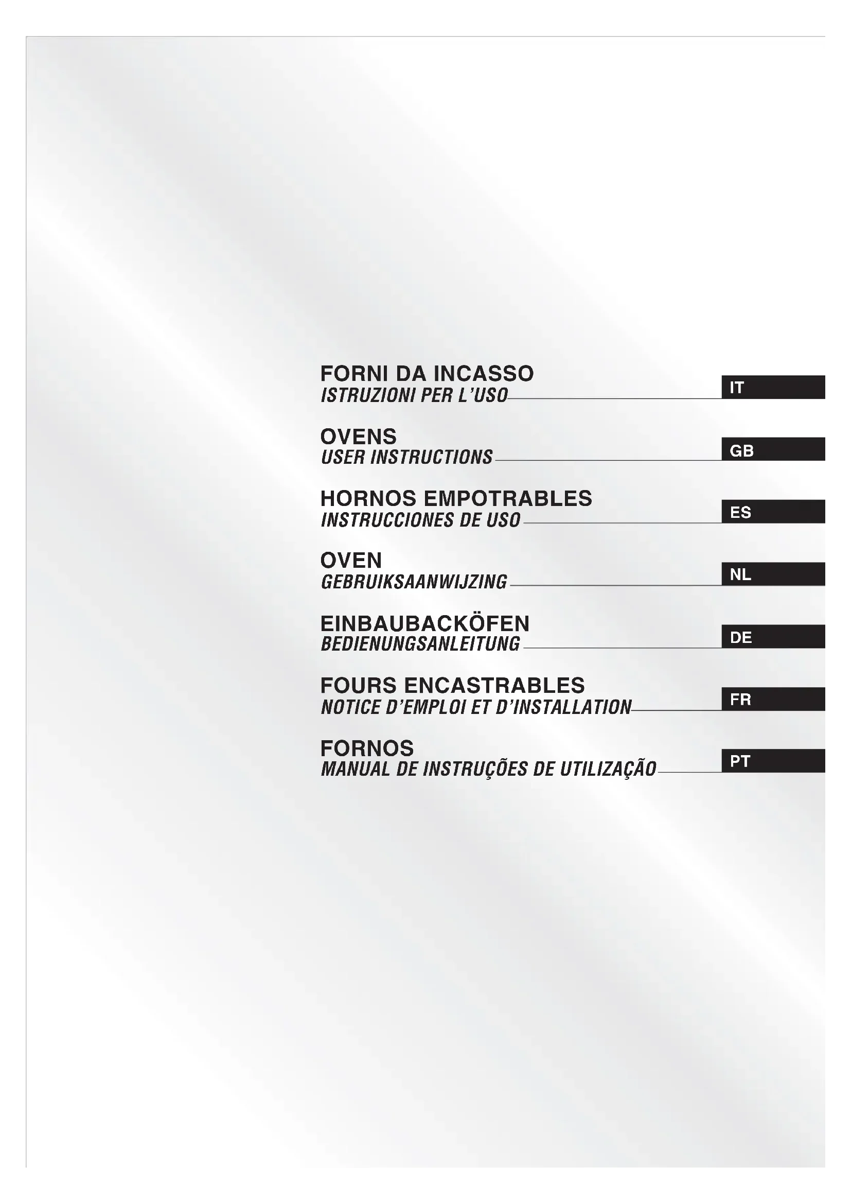 10 vorheizen grill Beim Grillen ab und zu wenden. 35 DE MULTIFUNKTIONSBACKOFENKONVENTIONELLER BACKOFEN— Lire attentivement les instructions contenues dans cette brochure, elles fournissent d’importantes indications sur la sécurité d’installation, l’emploi du four et son entretien. — Conserver soigneusement cette notice d’utilisation pour toutes consultations ultérieures. — Après avoir déballé votre four, vérifier que l’appareil est complet. — Les emballages comme le plastique, le polystyrène, peuvent constituer un danger pour les enfants. Ne pas les laisser à leur portée. ATTENTION Lors de la première utilisation du four, il peut se produire un dégagement de fumée âcre provoqué par la premier échauffement du collant des panneaux d’isolation enveloppant le four. Ce phénomène est normal. Attendez que la fumée cesse avant de cuire des aliments. Lorsque le four est en fonctionnement, la porte en verre est particulièrement chaude. ll est donc nécessaire que les enfants ne la touchent pas. Le risque est important surtout quand le gril est utilisé. Un écran protecteur, spécialement conçu, réduit considérablement la température de surface de la porte du four (seulement sur quelque modèle). Il peut être obtenu auprès de notre Service Pièces Détachées. Cet écran protecteur est recommandé pour les ménages avec jeunes enfants. ATTENTION: La tension et la fréquence d’alimentation sont indiquées sur la plaque signalétique (illustration dernière page). Faites appel à un professionnel pour l’installation de votre four. INSTRUCTIONS GENERALES IMPORTANT Le meuble qui va supporter le four doit avoir des caractéristiques appropriés. Les panneaux du meuble doivent pouvoir résister à la chaleur. Dans le cas de meubles en bois plaqué, les colles doivent résister à une température de 120°C sinon il y a un risque de décollement ou de déformations. Conformément aux normes de sécurité, une fois encastré, aucun contact ne doit être possible avec les parties électriques. Toutes les parties qui assurent la protection doivent être fixées de façon à ne pas pouvoir être enlevées sans outil. Pour garantir une bonne aération, retirer la paroi arrière du meuble. ALIMENTATION ELECTRIQUE Brancher la fiche dans une prise de courant équipée d’un troisième contact correspondant à la prise de terre. Montez sur le fil une prise normaliséé capable de supporter la charge indiquée sur la plaquette. Le fil conducteur de masse à la terre est identifié par les couleurs jaune et verte. Veiller à ce que votre installation soit capable de supporter toute la puissance absorbée par le four. Si votre installation électrique n’est pas conforme faites la modifier par un électricien afin de prévenir tous risques. On peut également effectuer le branchement au réscau en interposant entre l’appareil et le réseau un interrupteur omnipolaire avec une distance minimum entre les plots de 3 mm. dimensionnée en fonction de la charge et conforme aux normes en vigueur. Le fil de terre jaune et vert ne doit pas être interrompu par l’interrupteur. La prise et l’interrupteur omnipolaire utilisés doivent être facilement accessibles une fois l’appareil électroménager installé. IMPORTANT Une fois installé le fil d’alimentation doit être positionné de manière a ce que sa température ne dépasse pas de 50°C la température ambiante. L’appareil est conforme aux exigences de sécurité prévues par les organismes qui établissent les normes. La sécurité électrique de cet appareil n’est assurée que si il est correctement installé tout en respectant les normes de sécurité électrique en vigueur. Le constructeur ne peut être tenu comme responsable des dommages résultant du manque de mise à la terre de l’installation. DECLARATION DE CONFORMITÉ: